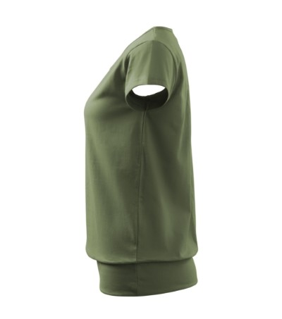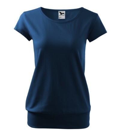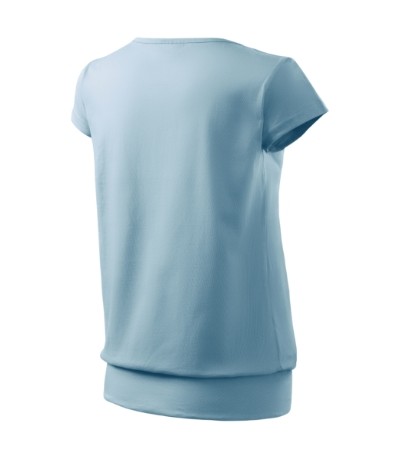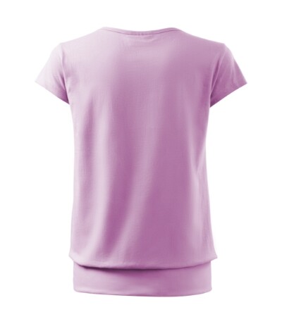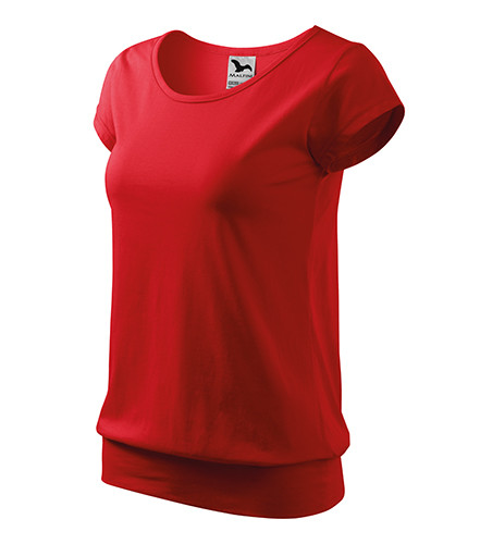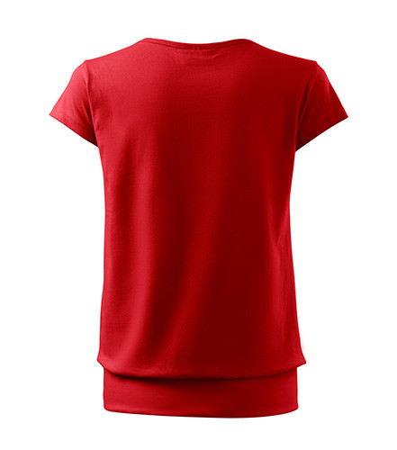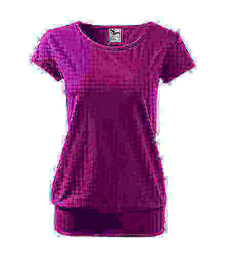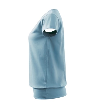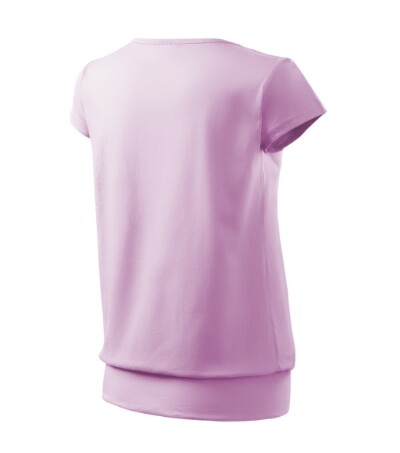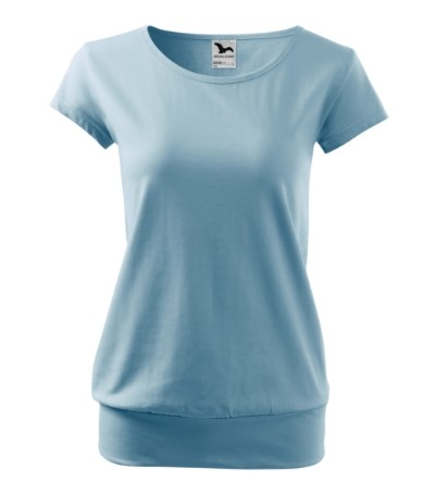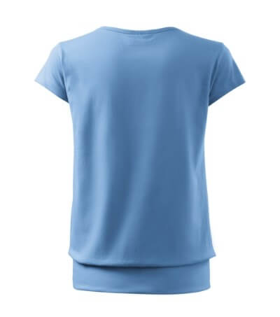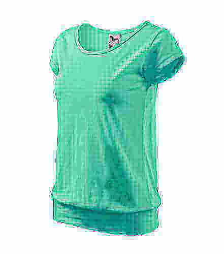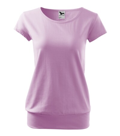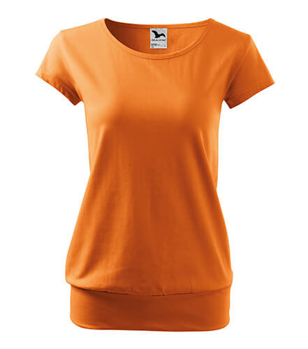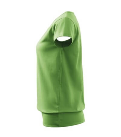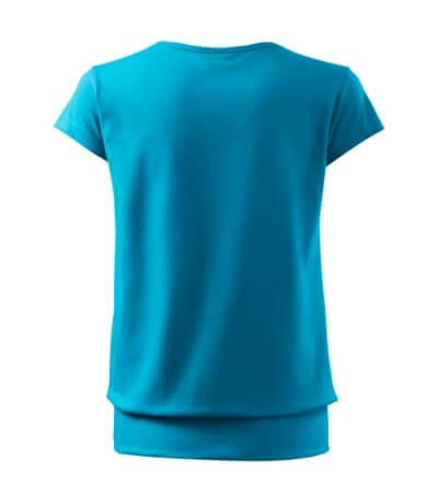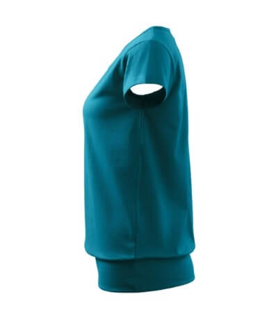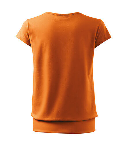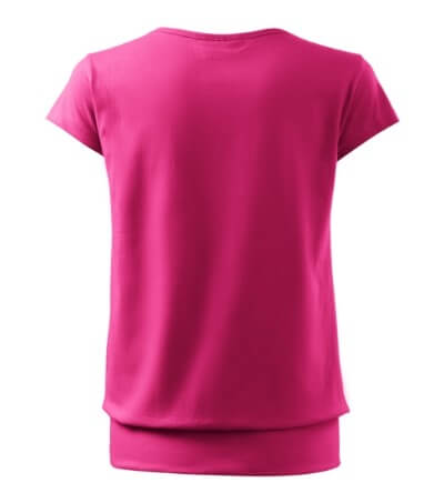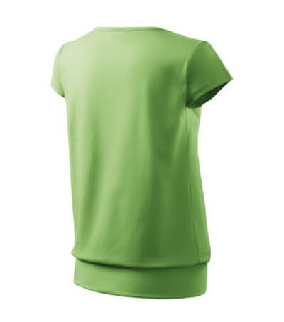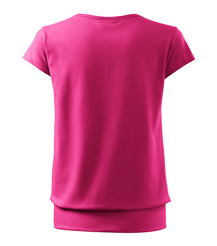 150 g / m2, 100% bavlna, finální silikonová úprava, Single Jersey - Trendové dámské triko s velmi krátkým rukávem, volnějšího střihu, široký spodní lem. Kulatý průkrčník s úzkým lemem ze shodného materiálu. Ramena zpevněné všitým proužkem. Tričko má délku do hloubky boků. Silikonové změkčovadlo zajišťuje splývavost a měkkost na dotek.
