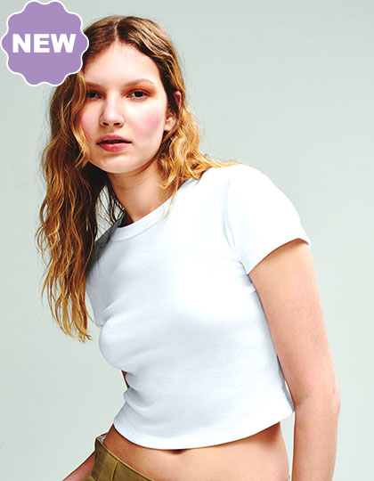 Česaná a kruhově dopřádaná bavlna Airlume. Výstřih ke krku s lemováním. Střední délka. 1x1 žebrování. Přiléhavé. Pružný střih. Předsrážené. Postranní švy.