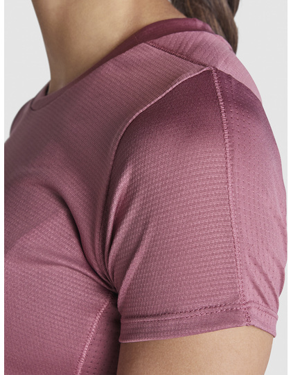 Shortsleeve-T | Lehká tkanina vyrobená z recyklovaného polyesteru | Límec s překříženými detaily a skrytými švy | Zadní sedlo a rukávy jsou vyrobeny z prodyšné tkaniny | Přední a diagonální švy na bocích a ramenou | Kombinace prodyšných a elastických tkanin | Postranní švy. 100 g/m².