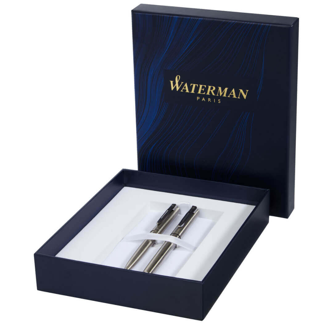 Dárková krabička dvou per je navržená tak, aby umožňovala kombinaci dvou různých režimů psaní a poskytovala flexibilní zážitek z psaní. Vyberte si například mezi kombinací kuličkového a roller pera nebo kuličkového a plnicího pera.
