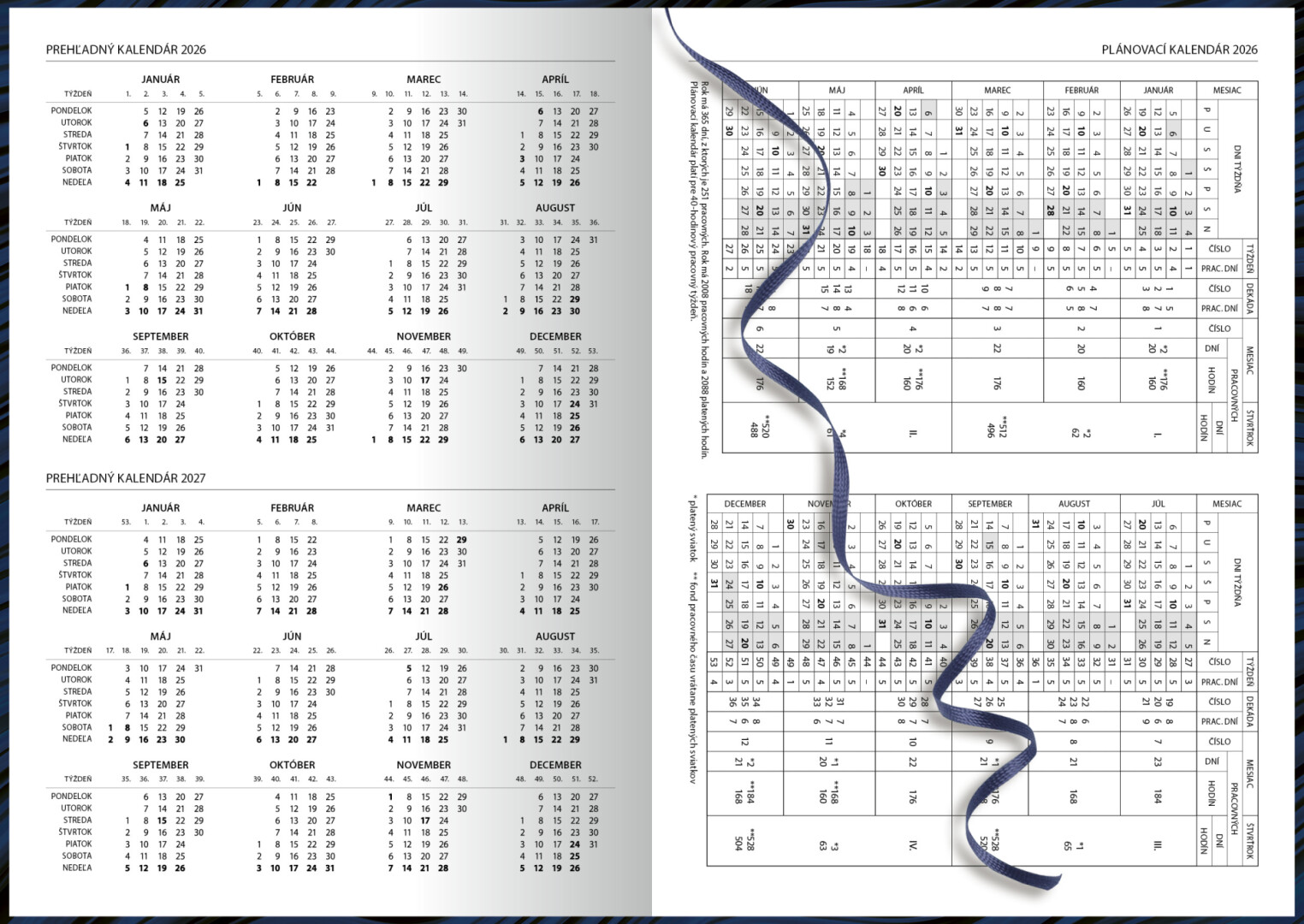 Největší denní diář, jediný svého druhu, přináší přehlednost a dostatek prostoru pro zápis každého dne. Diář je v pevných deskách se slovenským kalendáriem a poutkem na pero. Potiskem chráněné laminované desky zajišťují kvalitu diáře po celý rok.