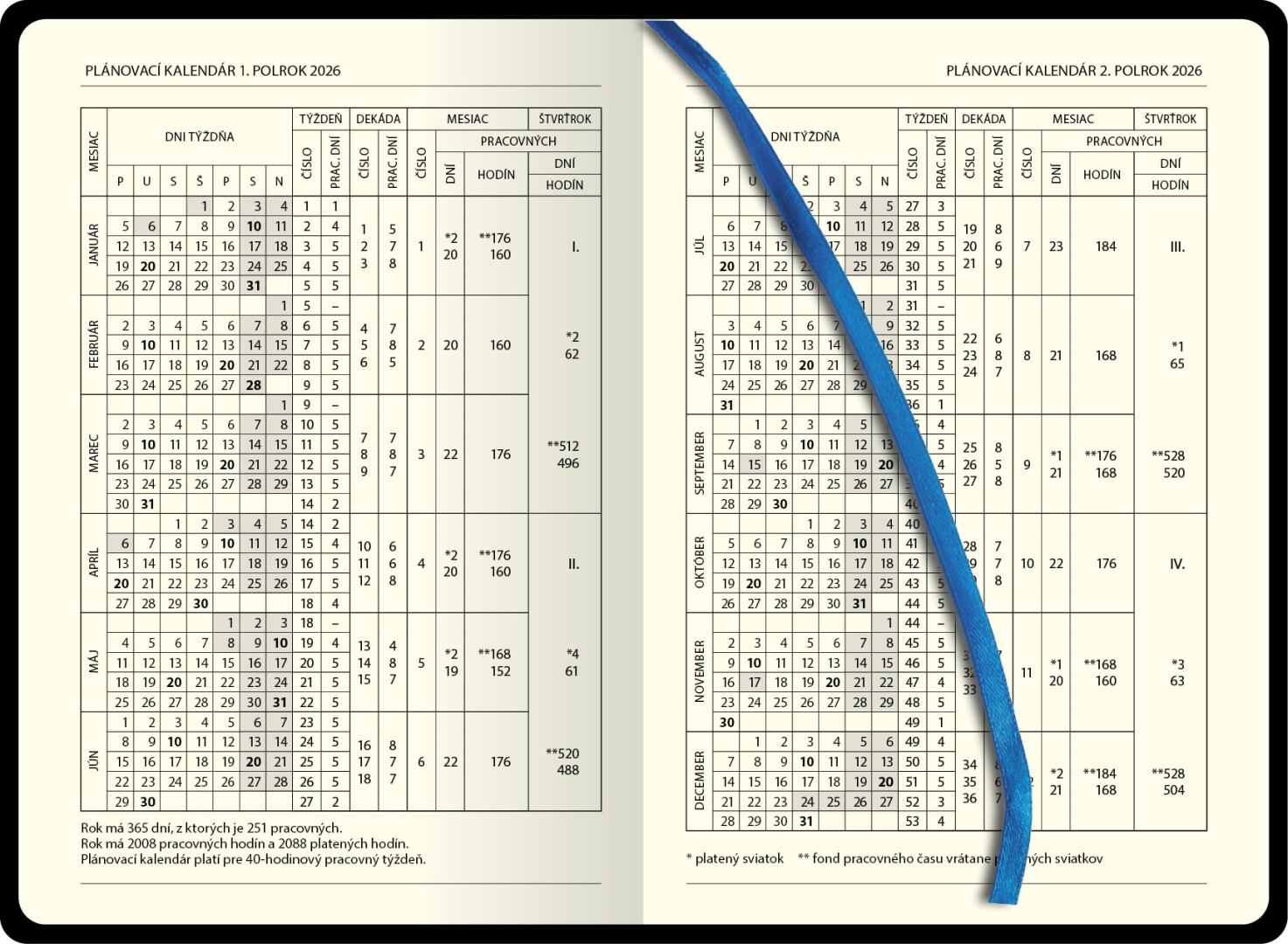 Denní diář s přehledným kalendáriem na každý den, poutkem a vložkou na pero, pružným uzávěrem a praktickou kapsou. Diář je v pevné vazbě z ekokůže a s vyraženým letopočtem. Obsahuje slovenský kalendář.