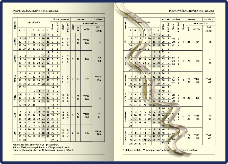 Oblíbený diář s přehledným kalendářem na každý den. Diář je v tvrdých deskách s pěnovou předsádkou. Obal je vyroben z ekologické kůže, která je doplněna jedinečným termo reliéfem. Součástí je slovenský kalendář.