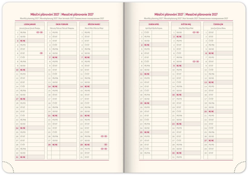 • měsíční plánovací kalendář 2027