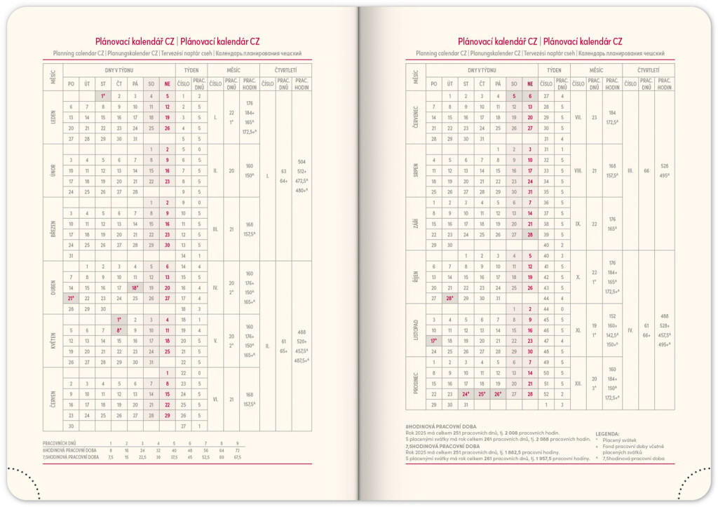 • pracovní plánovací kalendář