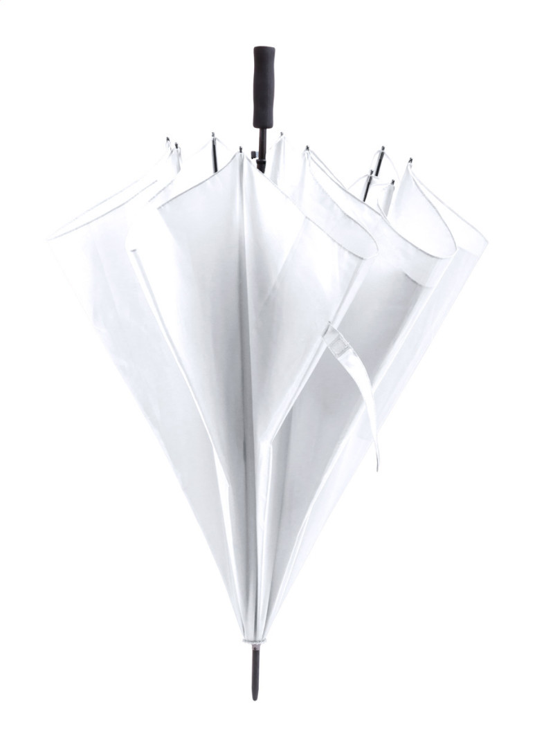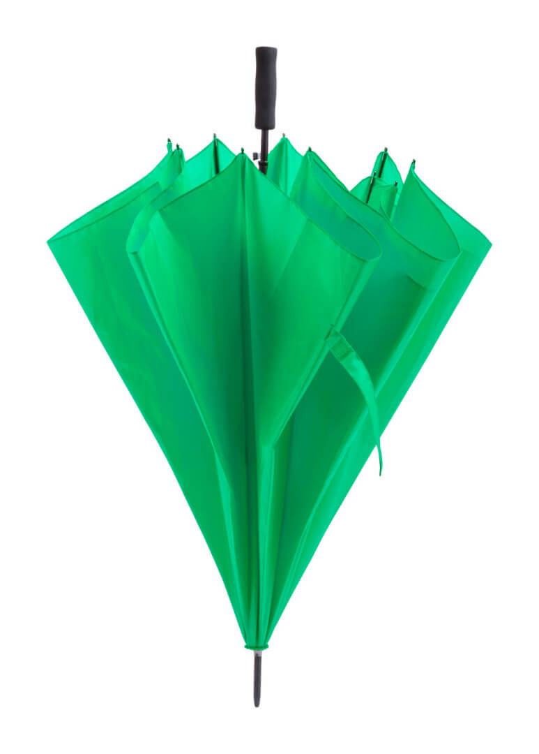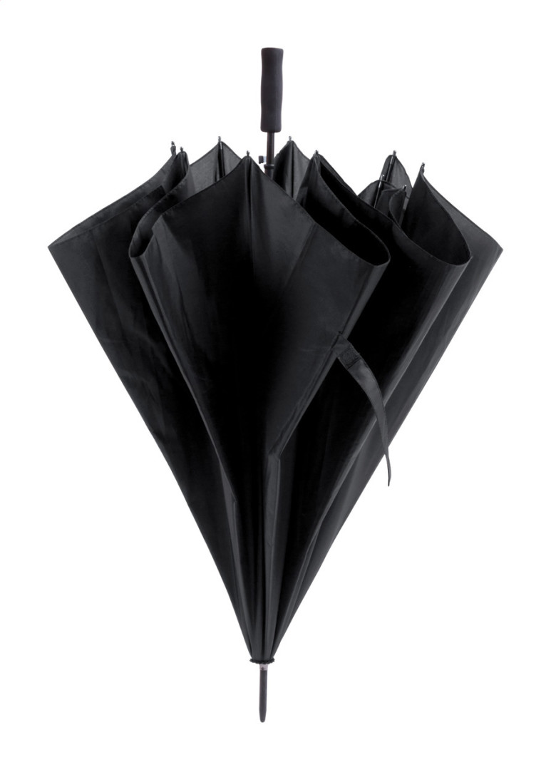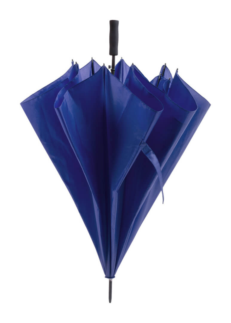 Velký, automatický větruodolný deštník s 8 panely, kovovou tyčkou a rámem, ABS žebry a rukojetí z EVA pěny, 190T polyester.