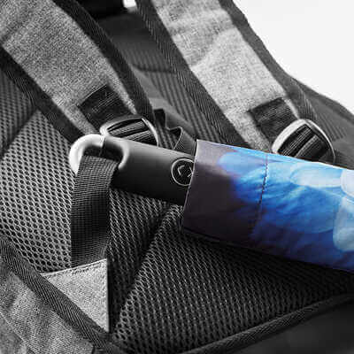 Deštník Clip, plnobarevně potisknutelný už nikdy neztratíte díky klipu, kterým si ho můžete zachytit o batoh či tašku. Žebra ze skleněných vláken, automatické otevírání a zavírání. Včetně vrstvy, která zabezpečí stálosti barvy. Deštník lze plnobarevně celoplošně potlačit. Včetně odpovídajícího obalu na deštník s reflexním popruhem. Možnost výběru barvy rukojeti.