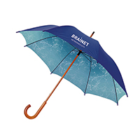Deštník s dřevěnou tyčí a háčkovou rukojetí, 23 palců (průměr 102 cm). Kovová žebra a dřevěné hroty. Automatické otevírání. Včetně barevné stálosti.
