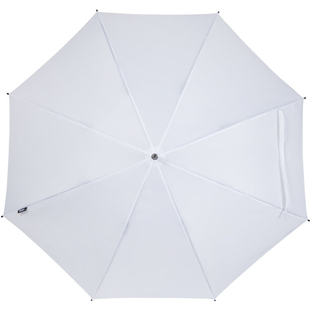 Deštník se stříškou z recyklovaného PET polyesteru ponžé a automatickým otevíraním, 23”. Má robustní kovovou násadu, rám ze skelných vláken a pohodlnou EVA rukojeť s barevně ladícím koncem. Na každém z panelů je velká dekorativní plocha.
