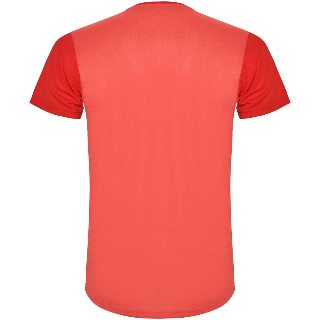 Snadno schnoucí, technická a prodyšná látka. Kulatý výstřih. Kombinace dvou polyesterových látek na zádech a ramenou. Látka „ptačí oko“ vpředu a prodyšná 3D síťovina na zádech. Látka připravená pro absorpci vlhkosti. Ozdobný klikatý zadní steh na bocích a na ramenou. Zadní vzor je mírně delší. Odnímatelný štítek.