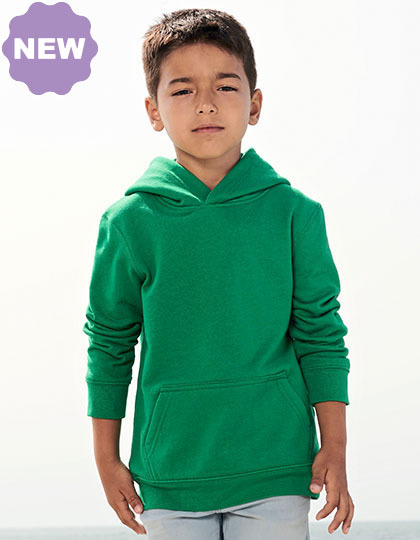 Recyklovaný polyester. Vsazené rukávy. Postranní švy. 1x1 žebrované manžety a spodní část. Kapsa klokanka. Kapuce s podšívkou. Žerzejový půlměsíc a zpevňovací páska za krkem uvnitř límce. Volný střih.