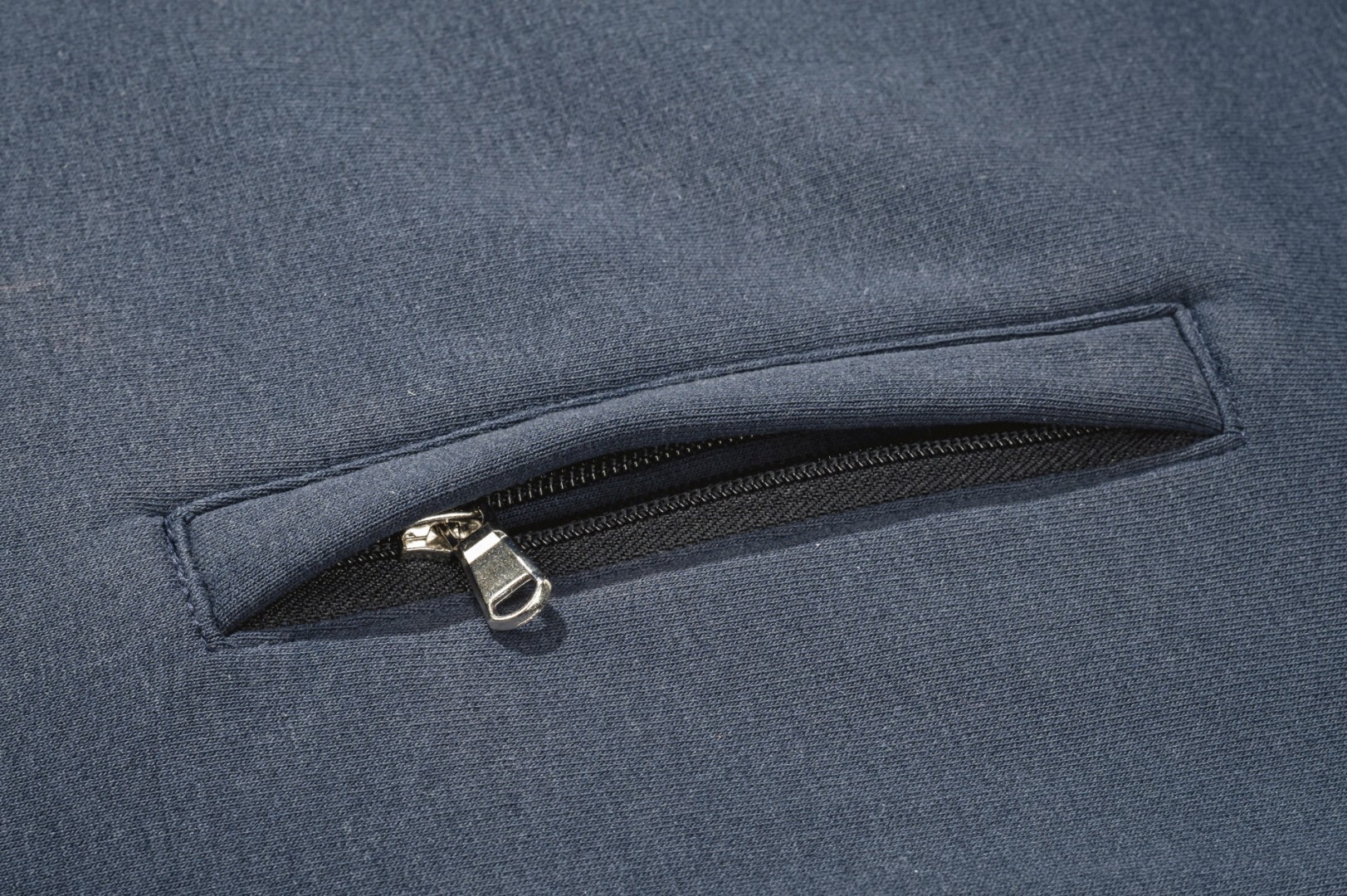 Kruhově dopřádaná česaná bavlna / recyklovaný polyester (česaná vnitřní strana) | Měkká směsová tkanina | Moderní regular fit | Ochrana proti žmolkování a sražení, stálobarevné | Dvě boční kapsy na zip a dvě vnitřní kapsy | Šev, okraje kapes a manžety jsou vyrobeny z vysoce kvalitního 1 x 1 žebrovaného úpletu | Všechny švy jsou vylepšeny plochým dekorativním prošíváním | Každý se třemi kovovými očky v retro stylu (ošoupané) | Široká šňůrka ve stejné barvě | Bez štítků