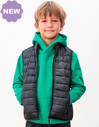 Vnější materiál a podšívka: recyklovaný polyester, zateplení: polyesterové peří | Přední zapínání a boční kapsy se sladěným nylonovým zipem | Sladěné kovové posuvníky se sladěnými taftovými jezdci | Vysoký límec | Sladěné elastické lemování na průramcích a spodní části | Úložný vak