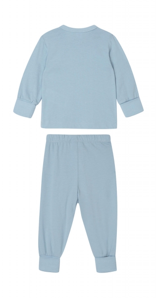 150 g/m², 100% (organická nebo v přeměně na organickou) bavlna, Single Jersey, dvě patentky u otvoru na krku pro všechny velikosti kromě velikosti 2-3 roky, extra dlouhé žebrované manžety na rukávech a kalhotkách, které lze nosit složené/ rozloženo (jako dítě roste), jednoešvé prošití na límci, odtržitelný štítek Tear Away pro jednodušší změnu značky, štítek péče s QR kódem pro sledování dodavatelského řetězce a kontrolu pozitivního vlivu nákupu bio
