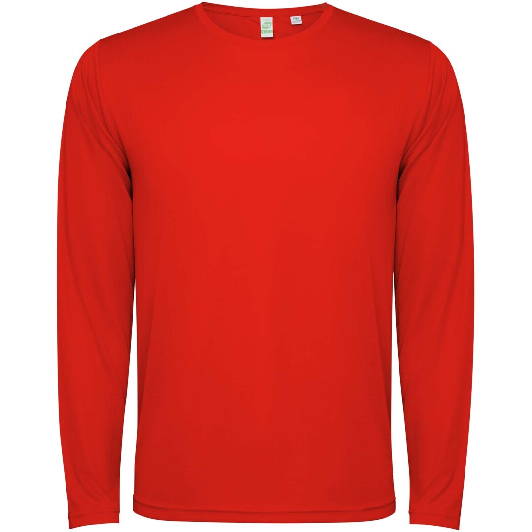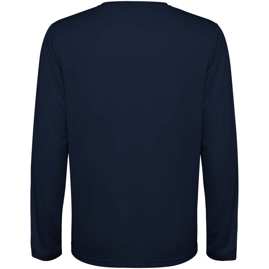 Dětské unisexové technické tričko s dlouhým rukávem. Límec se sladěnými švy. Zadní lem o něco delší než přední. Boční švy posunuté dopředu.