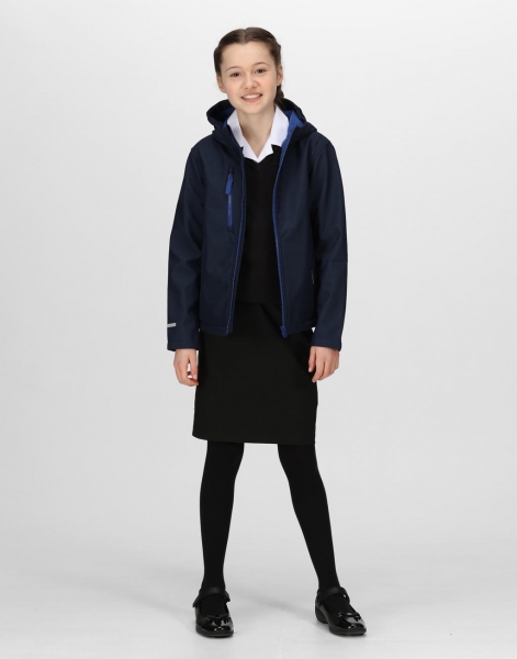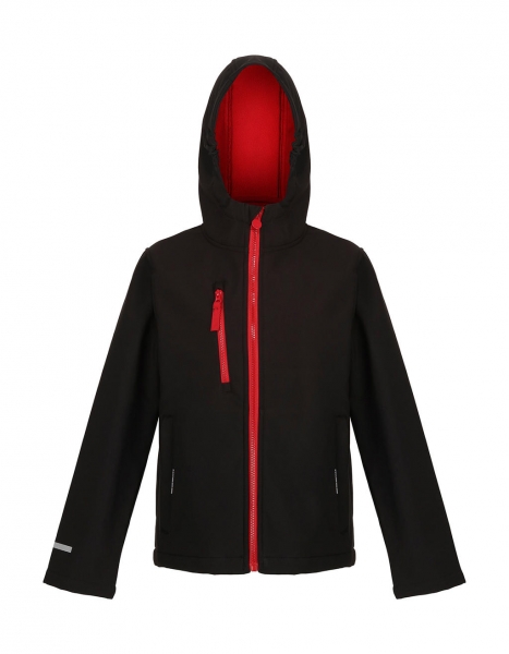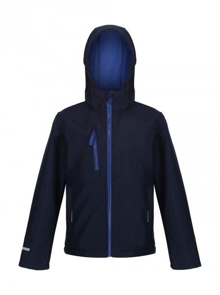 Vnější vrstva: 100% polyester, střední vrstva: prodyšná membrána, podšívka: 100% polyester (recyklovaný fleece), vestavěná kapuce s elastanem, zapínání na zip v kontrastní barvě s vnitřní klopou a ochranou brady, 2 spodní kapsy na zip, reflexní detaily pro lepší viditelnost