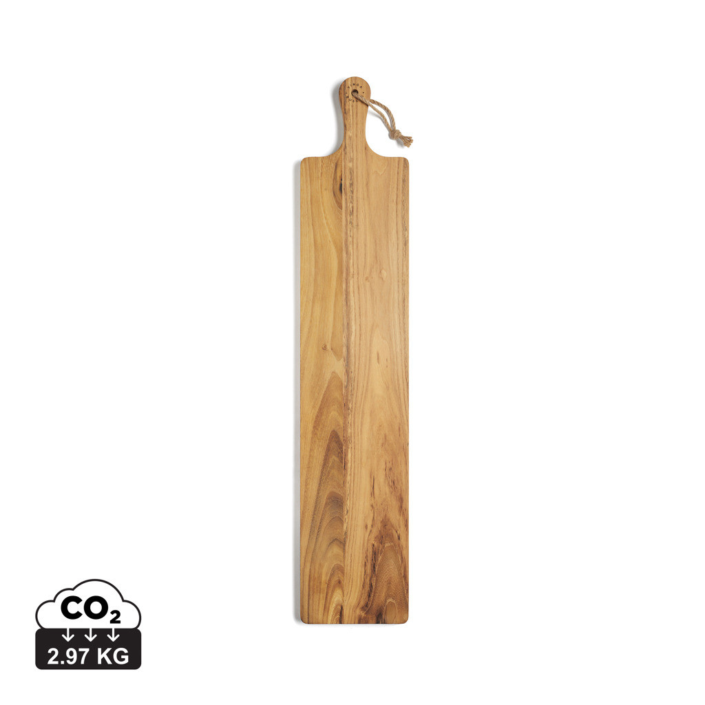 Robustní a velmi praktické prkénko na krájení/servírování, které má díky své délce 75 cm a šířce 15 cm dostatečně velkou plochu pro krájení i servírování. Je vyrobeno z teakového dřeva s certifikátem FSC a má krásný zlatavý až středně hnědý povrch, který časem tmavne. Vysoký obsah oleje zajišťuje silnou ochranu proti hnilobě a udržuje ho po dlouhou dobu v dobrém stavu.