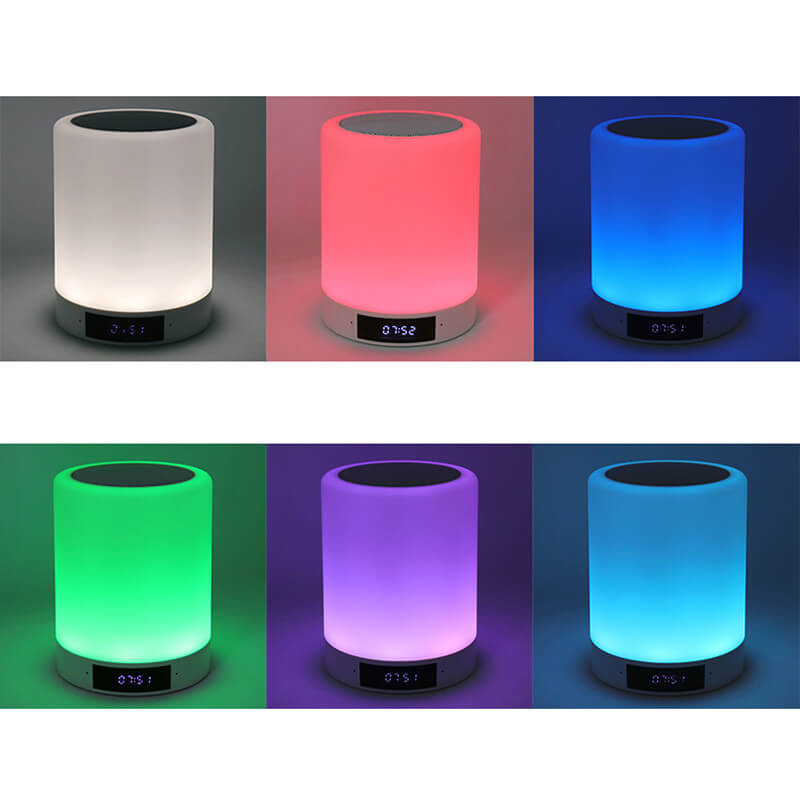 Moderní dotyková stolní lampa s Bluetooth reproduktorem a budíkem nabízí hned několik úžasných funkcí najednou. Lampa ve tvaru válce je ovládána dotykově a disponuje několika režimy svícení a různými barvami světla. Součástí je budík, FM rádio, hodiny a handsfree. Vnitřní baterie má vysokou kapacitu 2000 mAh. Hudbu z reproduktoru můžete přehrávat díky bezdrátovému připojení pomocí technologie Bluetooth 4.0, případně využít slot pro micro SD. Multifunkční dotykovou stolní lampu je navíc možné vylepšit potiskem podle vlastního přání.