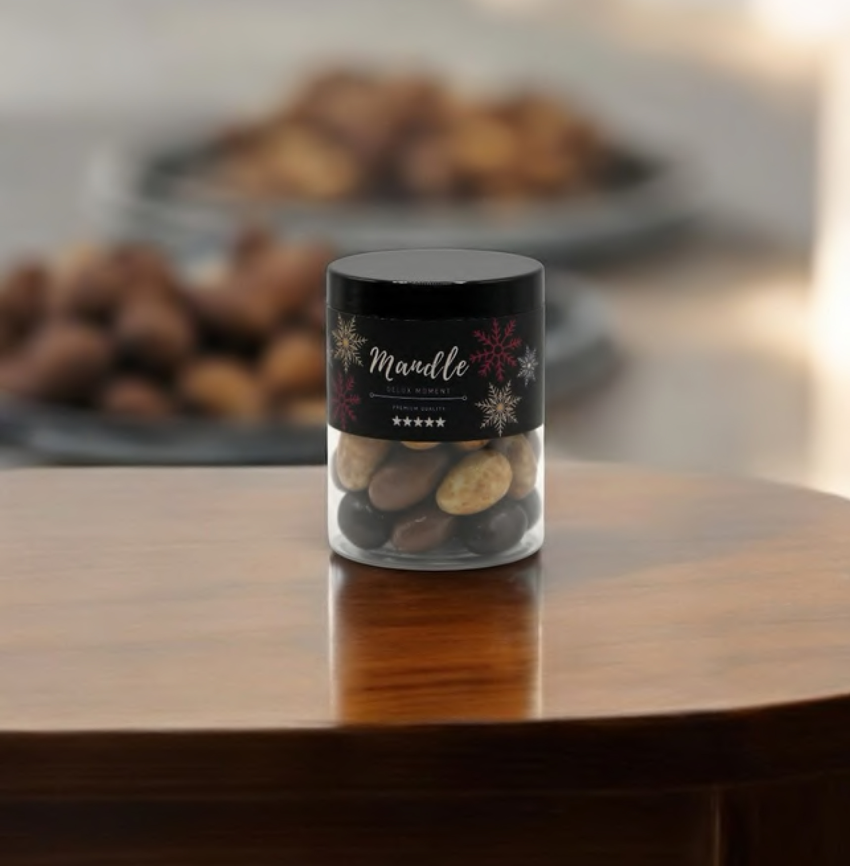Mix chutí – mandle v hořké, mléčné čokoládě as příchutí tiramisu. Každý kousek nabízí jedinečný zážitek, od výrazného po jemný tón. Ideální ke sdílení i jako dárek.