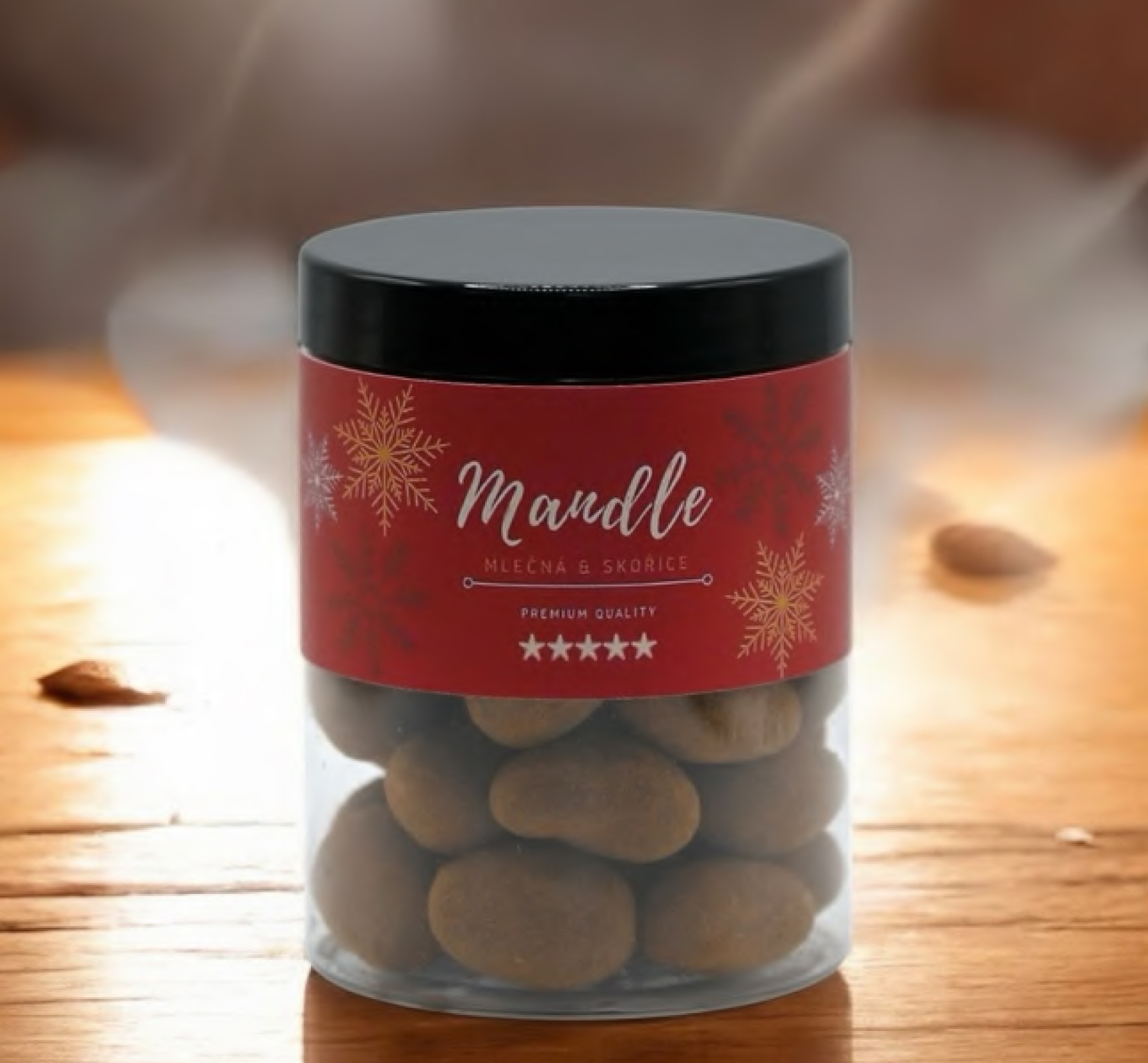 Dhrumkavé mandle obalené v jemné mléčné čokoládě a posypané mletou skořicí – lahodná kombinace chutí a vůní, která vytváří dokonalý sváteční zážitek.
