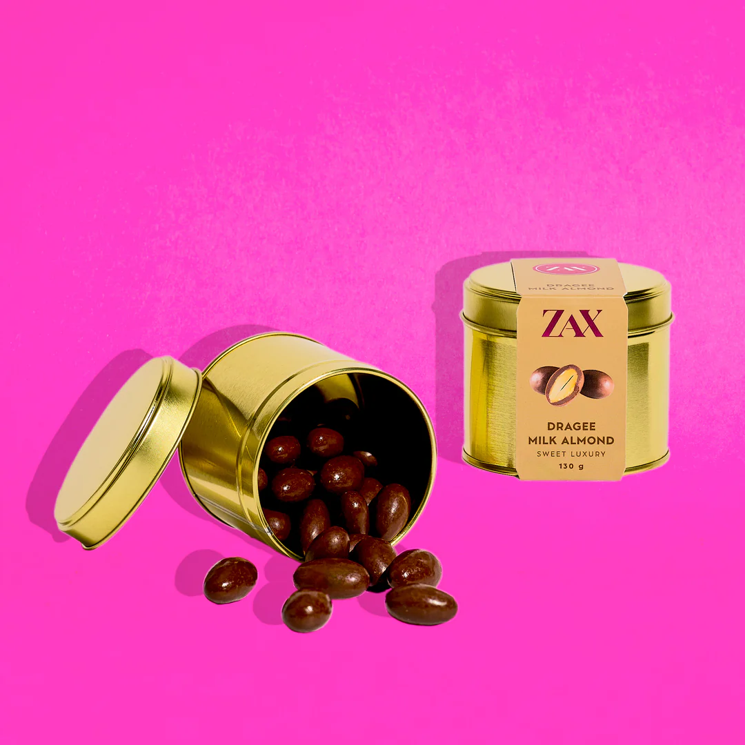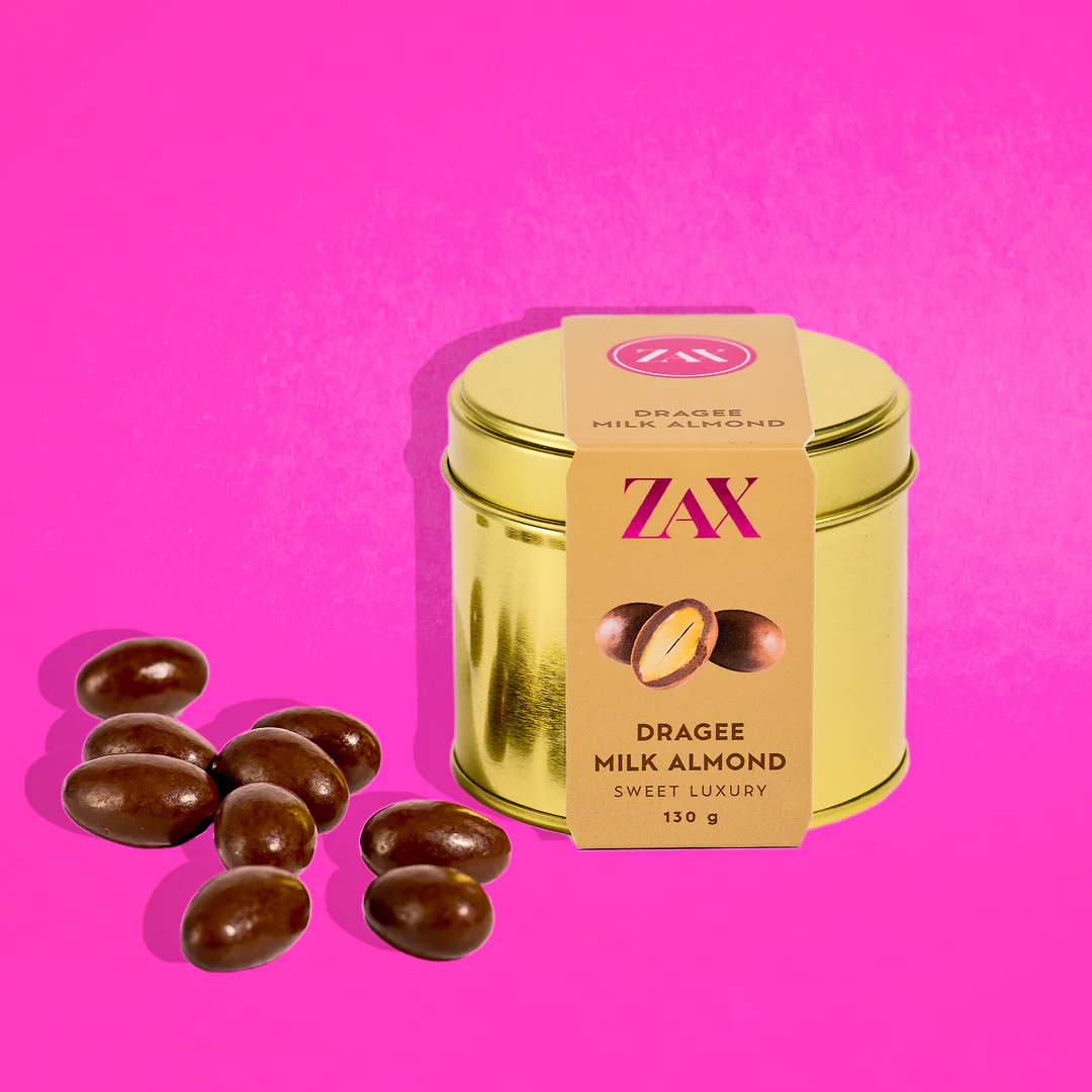 DRAGEE MILK ALMOND jsou oceněny dražé mandle obalené ve 40% mléčné čokoládě. Výběrové mandle z Kalifornie, Středomoří a Sicílie v sobě ukrývají křupavé jádro, které je jemně obaleno čokoládou, aby vynikla jejich přirozená chuť. Zářivý vzhled a balení v luxusní zlaté hliníkové nádobě činí z této pochoutky ideální dárek. Vítěz stříbra na Academy of Chocolate 2023 v Londýně. Trvanlivost: 6 měsíců. Rozměr: 70 × 65 mm. Váha: 130 g