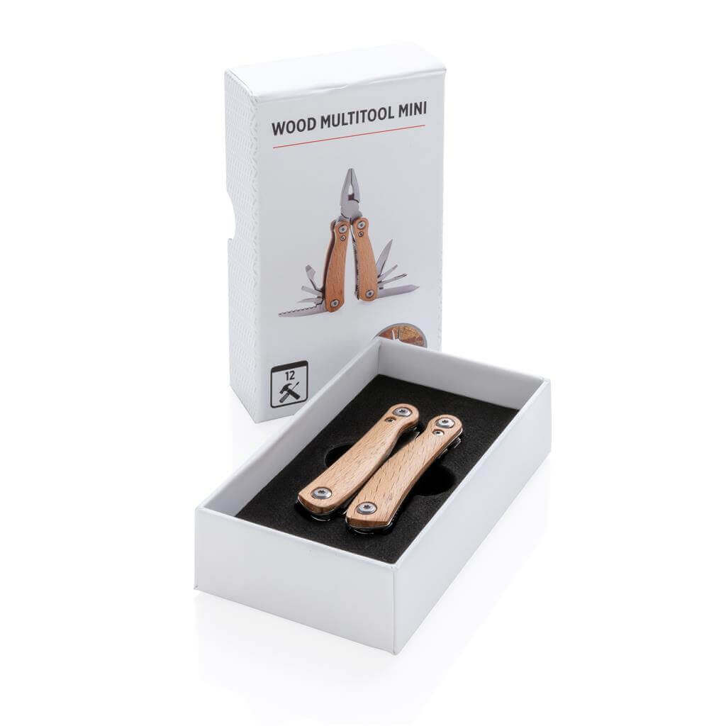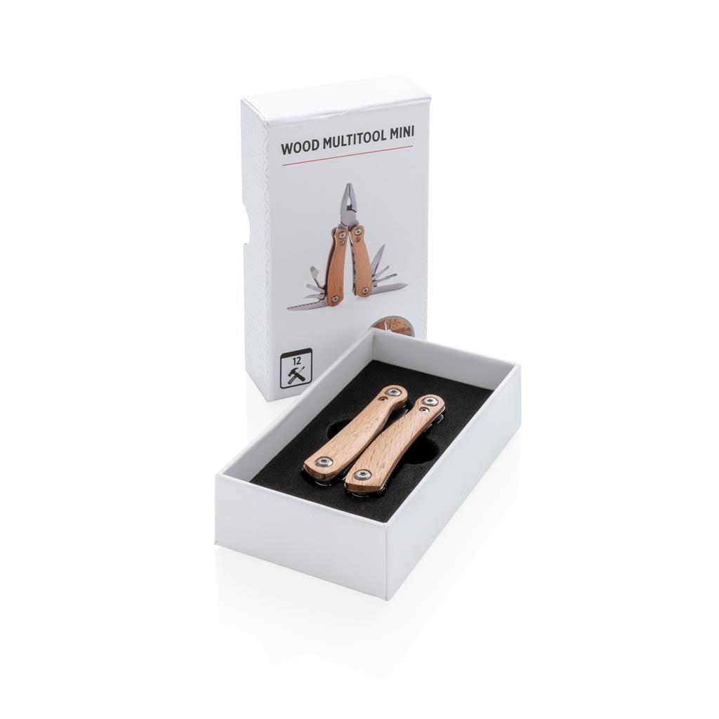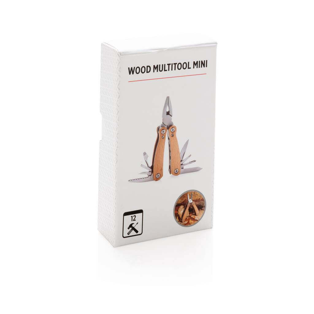 Kvalitní odolný multifunkční nůž s 12 funkcemi: kleště s jehlovou špičkou, utahovací kleště, štípací kleště, malý a standardní nůž s rovným ostřím, nůž se zubatým ostřím, křížový šroubovák, střední a velký plochý šroubovák, pilka, otvírák lahví, pilník. Tělo ze dřeva, nástroje z prvotřídní nerezové oceli. Baleno v dárkové krabičce. PMS color 1: 4665