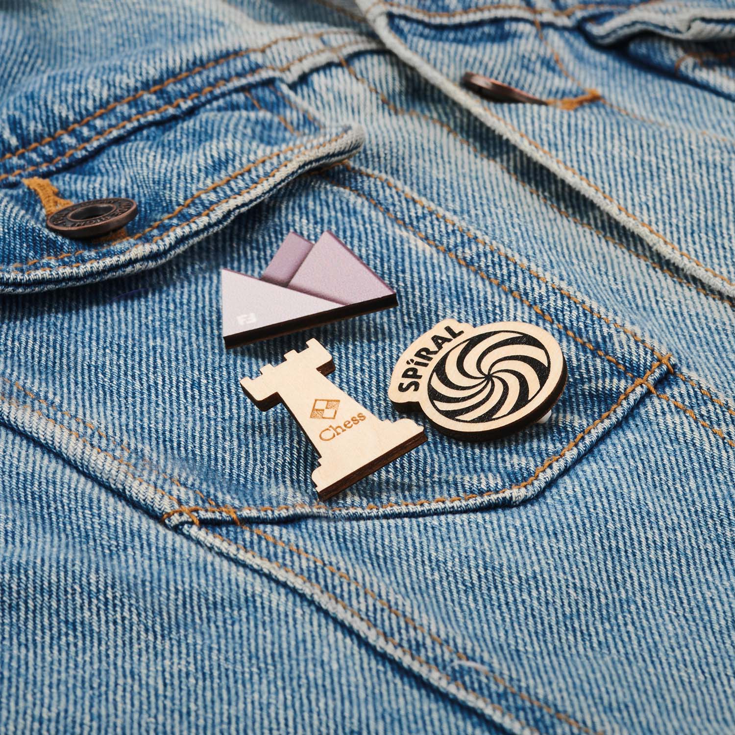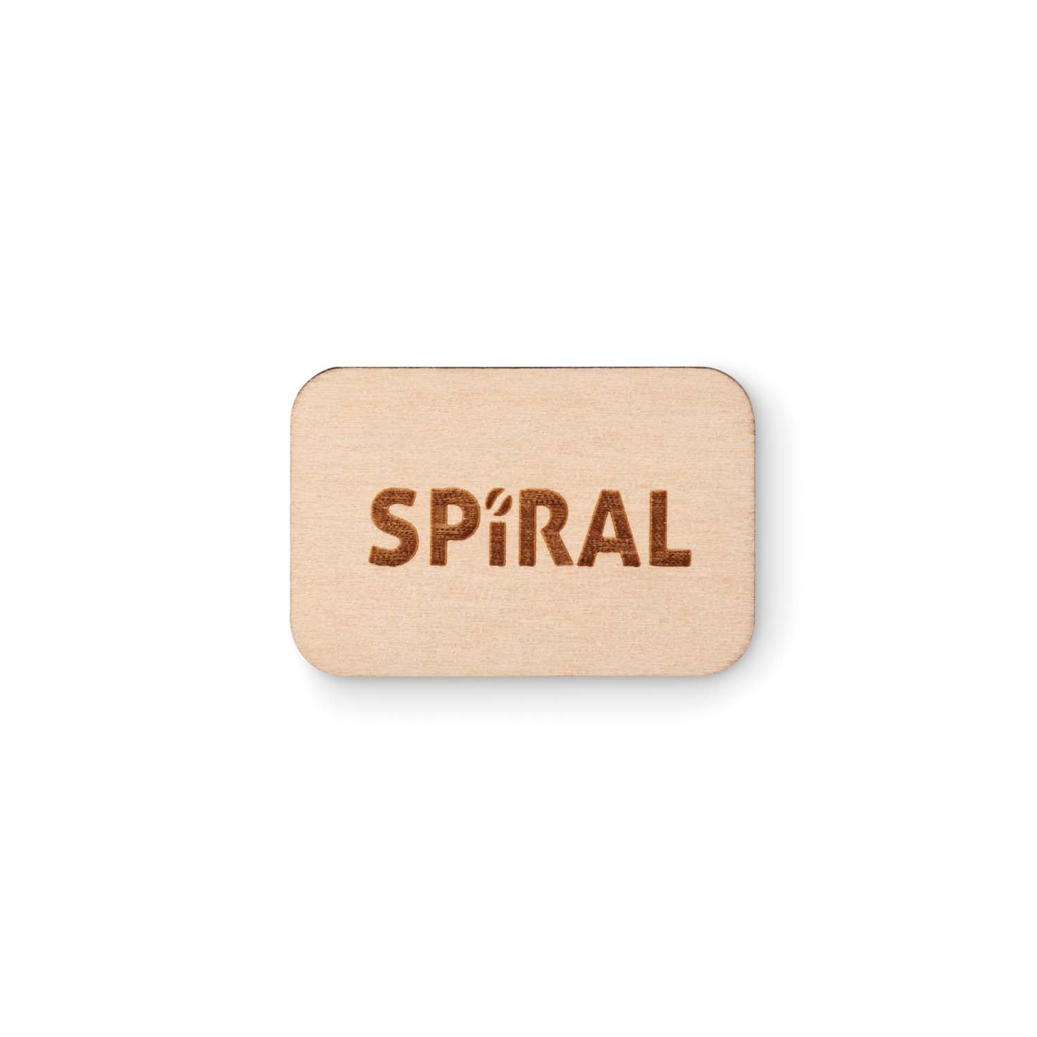 Dřevěný odznak do klopy saka na míru vyrobený z překližky (3 mm). Potisk (sítotisk nebo UV potisk) nebo vyrytí požadovaného vzoru na přední straně. Jednotlivě baleno v sáčcích.