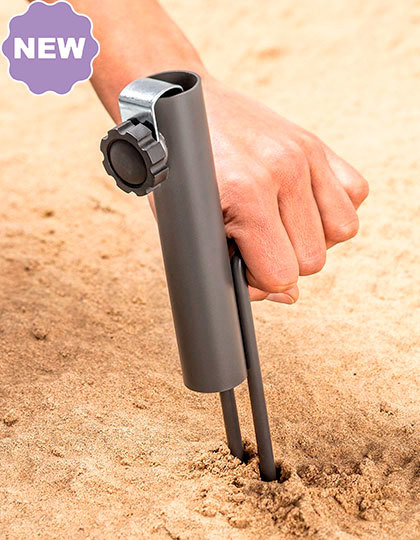 Držák slunečníku z odolné oceli | Dva 17cm hroty a pata/rukojeť pro snadnou manipulaci a perfektní úchop | Adaptér je vhodný pro tz4e o průměru 12 až 26 mm; pro menší průměry tz4e lze použít v kombinaci s adaptérem, který chrání materiál tyče slunečníku.