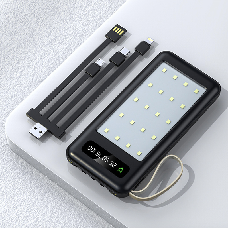 Powerbanka s opravdu výkonnou lampou je ideální pomůcka pro chataření nebo táboření. Do pouzdra powerbanky jsou vestavěny vstupní i výstupní kabely se všemi obvyklými konektory, takže nemusíte pamatovat na extra napájecí kabel. Powerbanka má dostatečnou kapacitu na dobití dvou standardních baterií mobilního telefonu, takže plně postačí pro udržení vašeho telefonu v chodu a sočasně o několik hodin perfektního osvětlení. Zbývající kapacitu akumulátoru zjistíte na LED displeji a z boku zařízení můžete vysunout opěrku pro mobilní telefon, který promění poverbanku v praktický nabíjecí stojánek. Do těla powerbanky si můžete nechat vygravírovat laserem vaše logo, nebo na ni natisknout jakékoli reklamní sdělení. Minimální odběr 50ks.