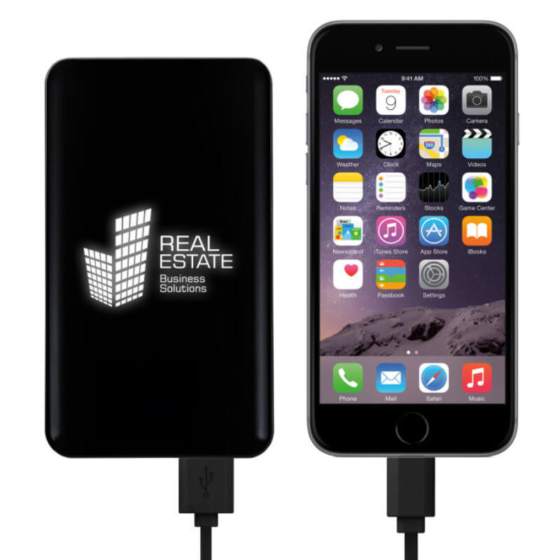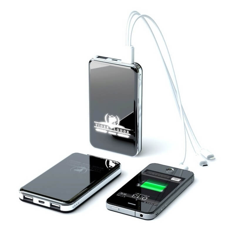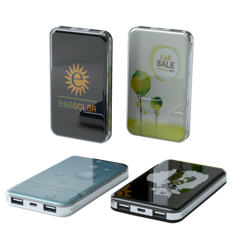 Jedinečný model s mnoha variantami aplikace firemního loga! Logo může být v klasických přímých barvách, může být plnobarevný (CMYK) potisk, nebo LED vysvícené logo. Případně kombinace více možností - nejoblíbenější je kombinace CMYK celoplošného potisku s LED logem. Lze vybírat ze tří dostupných kapacit. Nabijte Power Bank přes USB konektor počítače (případně síťový adaptér) a přes micro USB (popř. jiný konektor) následně nabijete Váš mobilní telefon, nebo jiné zařízení. Plně nabitá Power Bank zajistí 4 až 10 nabití mobilního telefonu, dle kapacity jeho baterie. Nabíjí iPhone, tablet, mobily, smartphone, iPad, MP3, kamery, reproduktory apod.