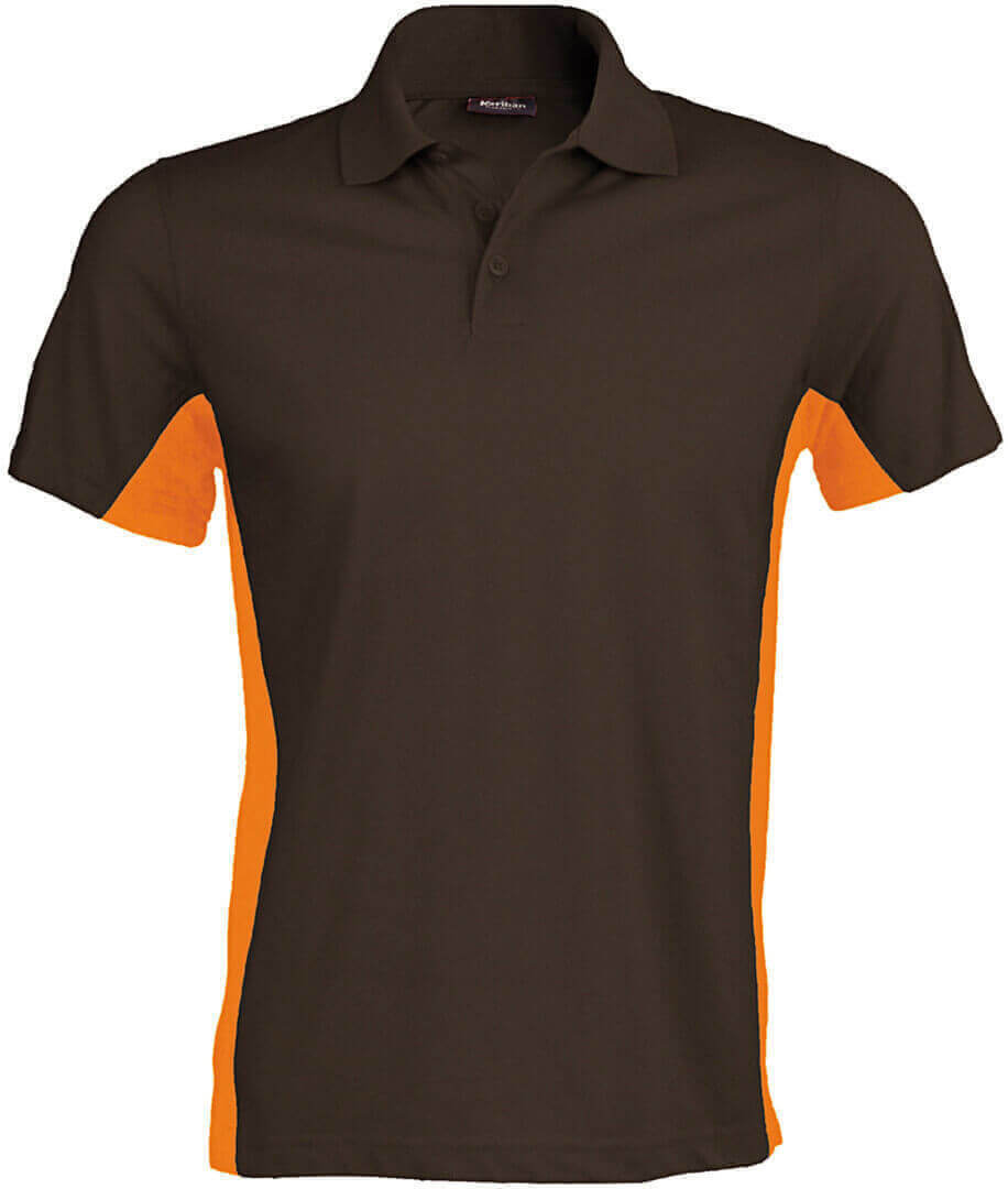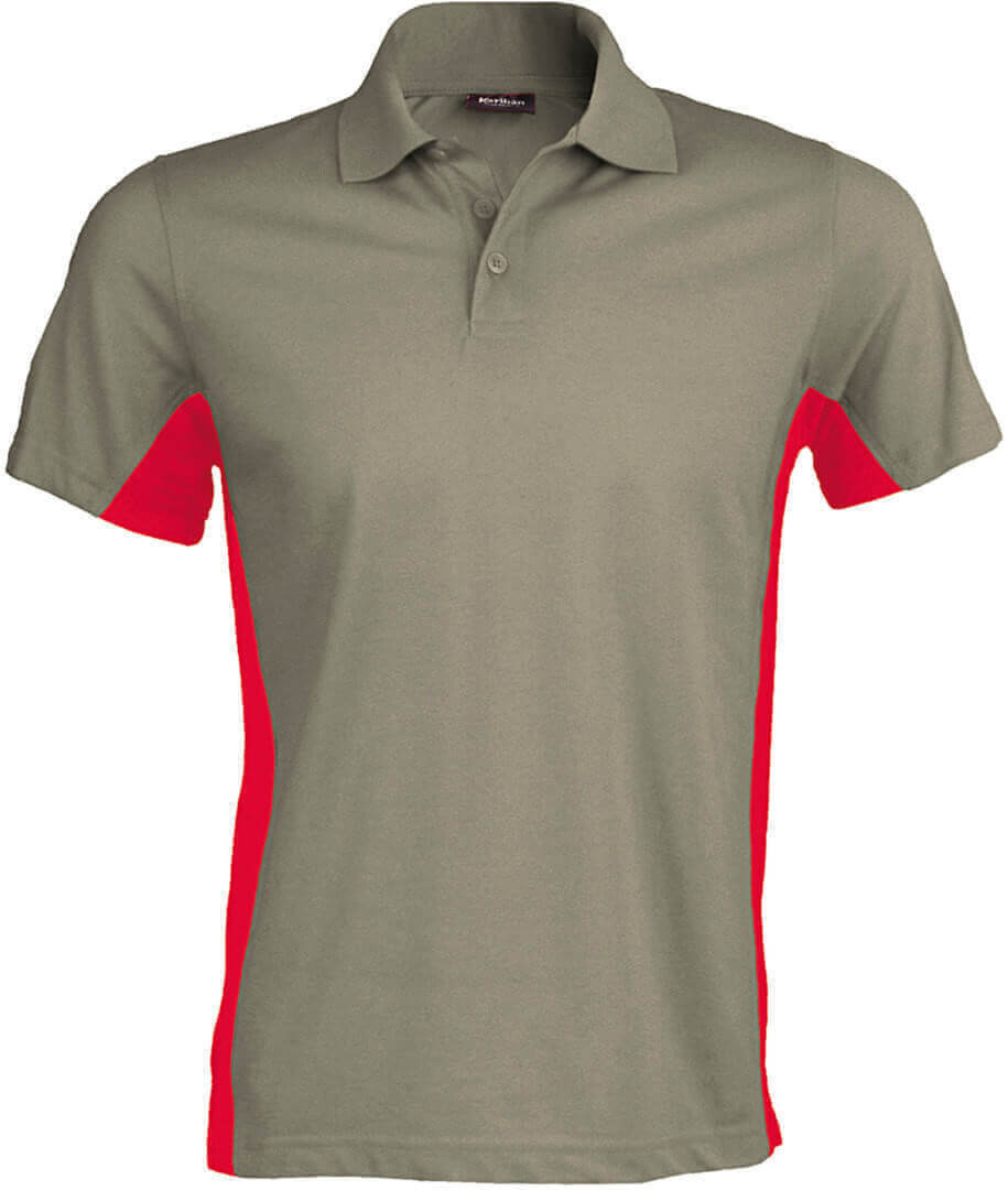 220g/m², 65% polyester, 35% piqué bavlna, žerzej dvoubarevné polo se 3 knoflíčky, plochý límeček, boční rozparky, dvojitě prošité lemy, na bocích jsou panely v kontrastní barvě