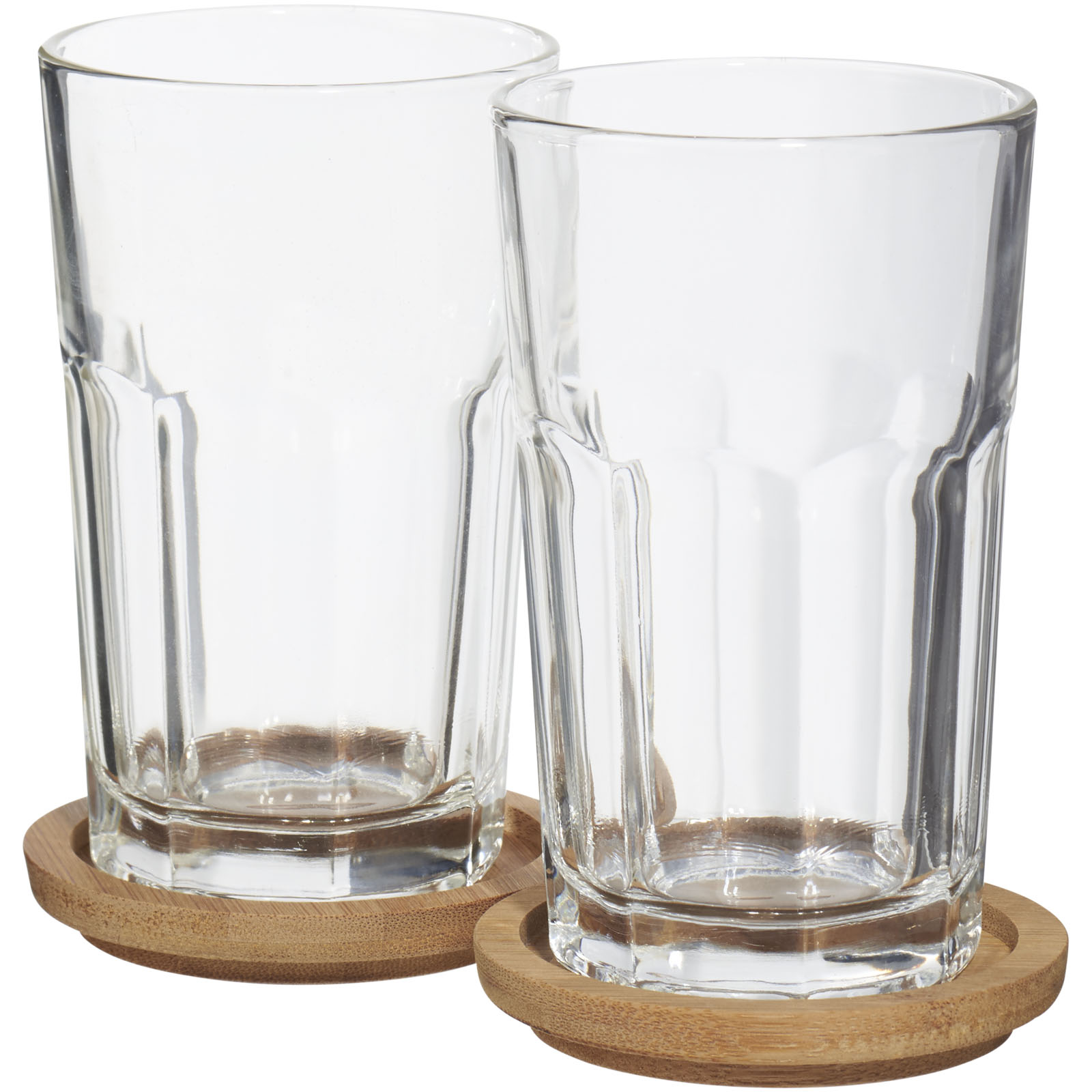 Dvoudílná sada sklenic s táckem Linden. Dvoudílná sada skleniček na teplé a studené nápoje. Tácky mohou také sloužit jako malé podnosy na sladkosti k Vašemu drinku. Objem jedné skleničky je 250 ml. Bambusový tácek měří 8,3 cm. Prezentováno v dárkové krabičce Seasons. Sklo a bambus.