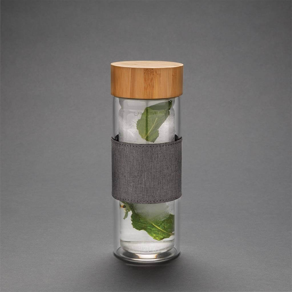 Souznění ekologického a zdravého stylu života. Láhev na vodu vyrobená z vysoce kvalitního borosilikátového skla odolného i vysokým teplotám, bambusový uzávěr a stylový úchop vyrobený z recyklovaných PET lahví (rPET). Díky dvojité stěně v rukou nepálí i při naplnění vroucím nápojem. Objem 750ml je ideálním pro pravidelnou hydrataci v průběhu dne. Bez BPA.