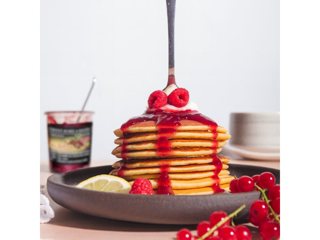 Složení výrobku: propasírované plody malin a červeného rybízu 50:50, cukr, citrónová šťáva, želírující látka - pektin.
