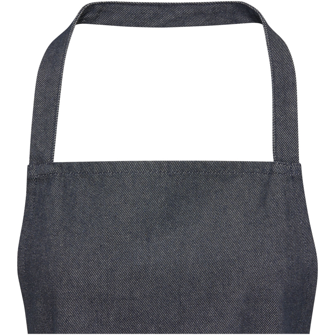 Zástěra Nima je vyrobena ze 70 % recyklované bavlny s gramáží 320 g/m² a 30 % recyklovaného polyesteru, díky čemuž je silná, pevná a pohodlná na nošení. Má 2 přilehlé kapsy (každá 22 × 20 cm) a pásky na zavázání o délce 1 m. Tato zástěra je také dodávána s indikátorem Aware™. Tato inovativní funkce umožňuje uživatelům sledovat původ a cestu jejich položky prostřednictvím QR kódu, čímž zvyšuje transparentnost v dodavatelském řetězci a podporuje pevnější propojení mezi produktem a jeho výrobním procesem. 70% recyklovaná bavlna, 30% Recyklovaný polyester, 320 g/m2.