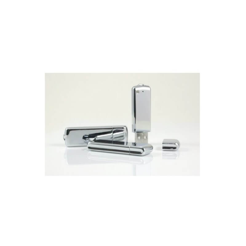 Kovový USB flash disk. Model s čepičkou. Vhodný pro laser loga, případně tampon tisk. Možno připojit šňůrku, nebo karabinku.