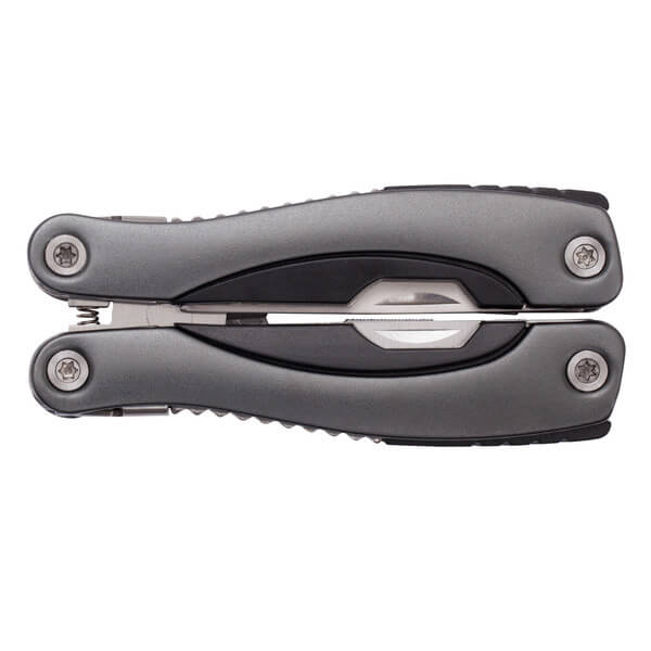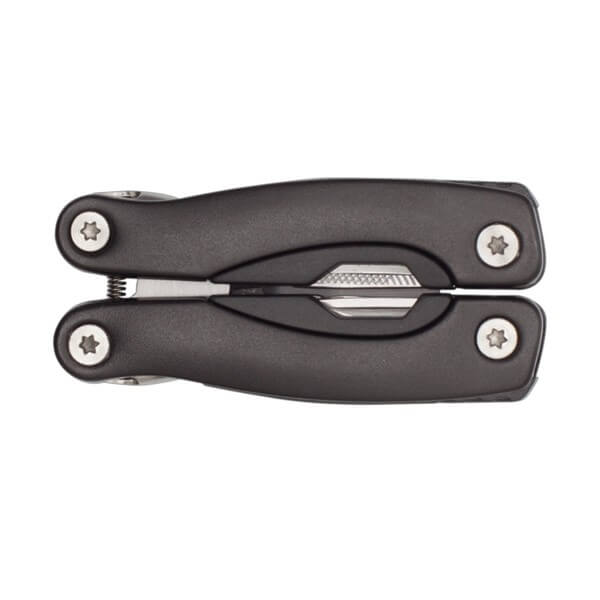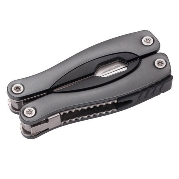Set nářadí s 9 funkcemi v pouzdře z polyesteru. Funkce: nůž, křížový šroubovák, otvírák na láhve, medium plochý šroubovák, pilkový nůž, univerzální kleště s nůžkami na stříhání drátu, malý plochý šroubovák, otvírák na konzervy, oboustranný pilník a jednostranný pilník.