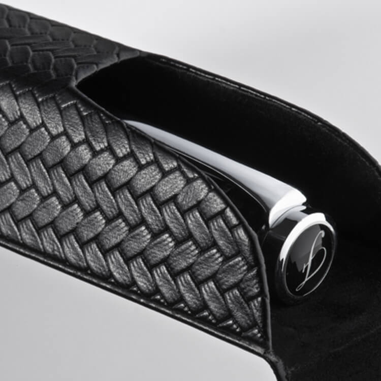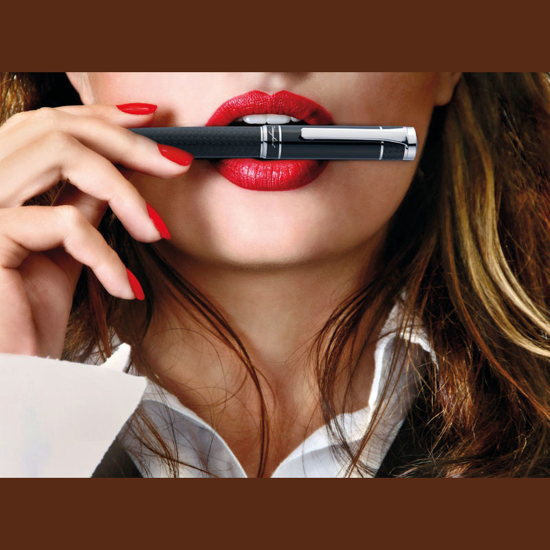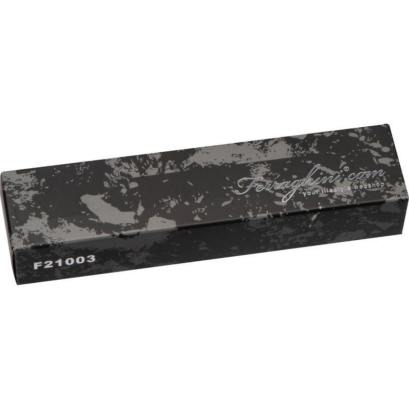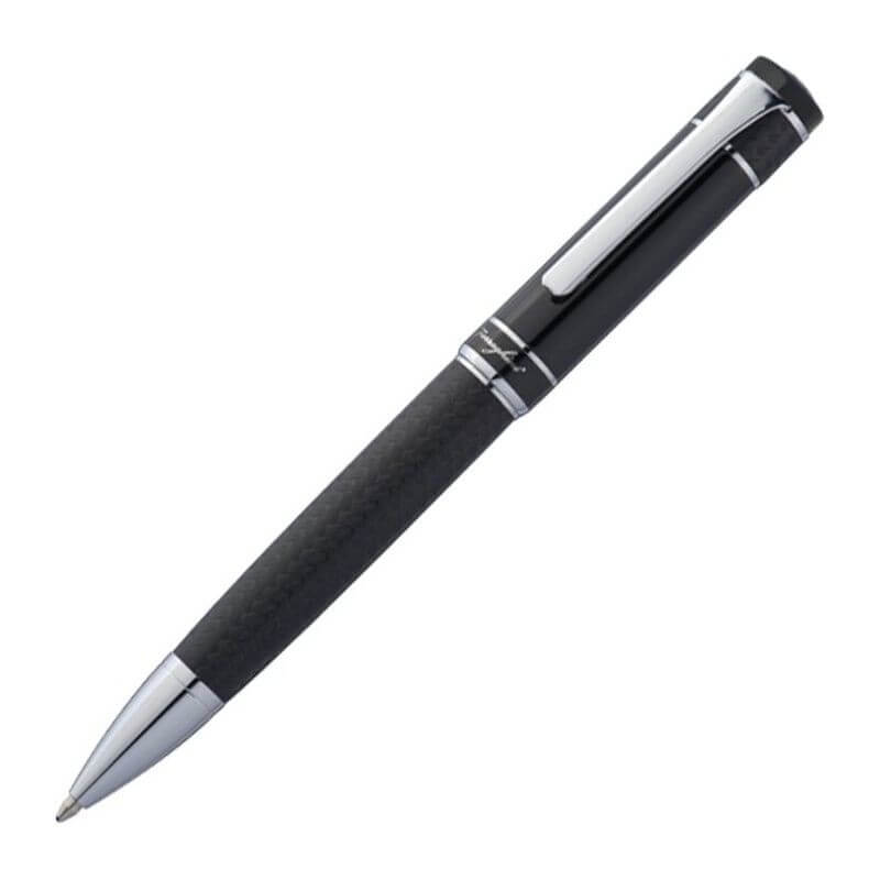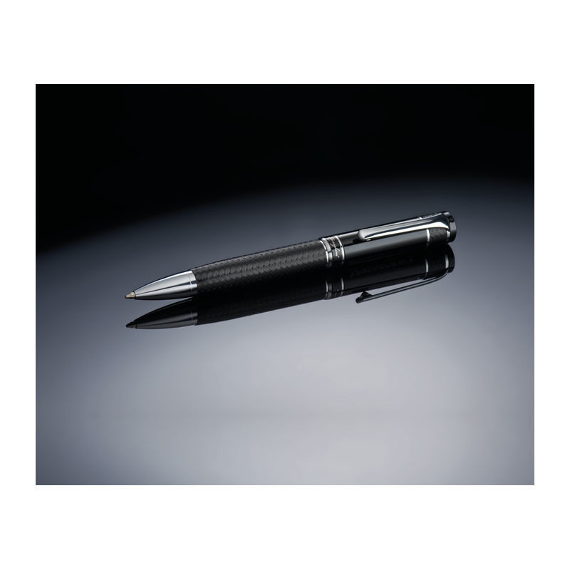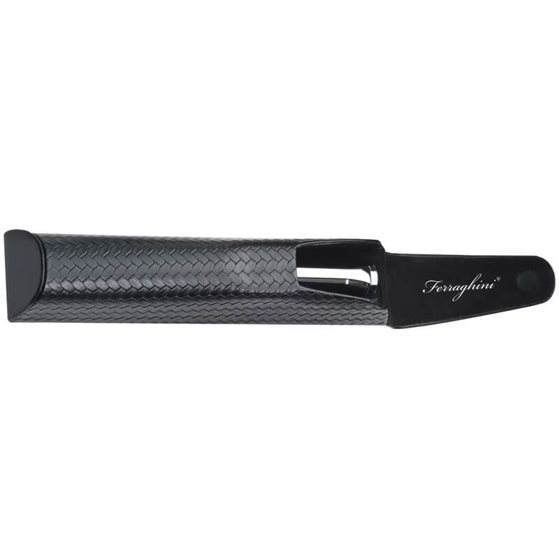 Luxusní Ferraghini kuličkové pero s twist mechanismem. Kombinace černého lakovaného povrchu a mřížkované designu je zvýrazněna s pochromovanými ozdobami. Modro-psací kuličkové pero je uloženo v polstrovaném pouzdře z umělé kůže s magnetickým uzávěrem.