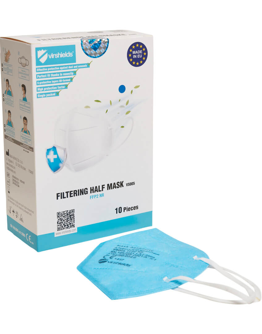 100% polypropylen, netkaný 5 vrstev (netkané textilie Spunbound-meltblown-Hot Air Cotton-meltblown-Spunbound), hydrofilní vnitřní vrstva absorbuje vlhkost, hydrofobní vnější vrstva chrání před postříkáním, vrstvy ve středním filtru , ploché ušní smyčky, vyhovuje normě: DIN EN 149: 2001 + A1: 2009, bakteriální filtrační účinek na úrovni ≥ 94 %, účinek filtrace bakterií na úrovni ≥ 94%, prodejní jednotky po 10 kusů (např. pokud potřebujete 50 kusů, objednejte si 5 prodejních jednotek), bez možnosti vrácení