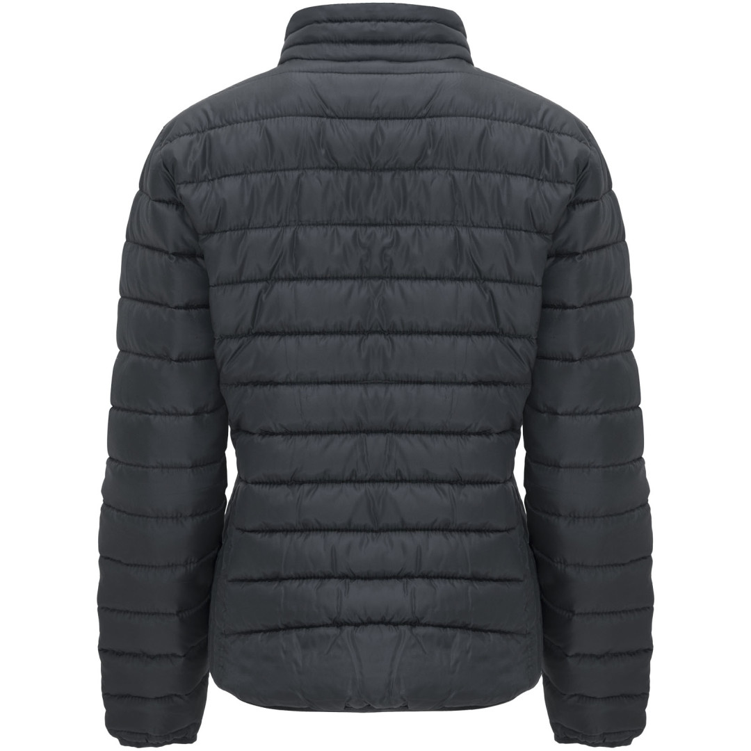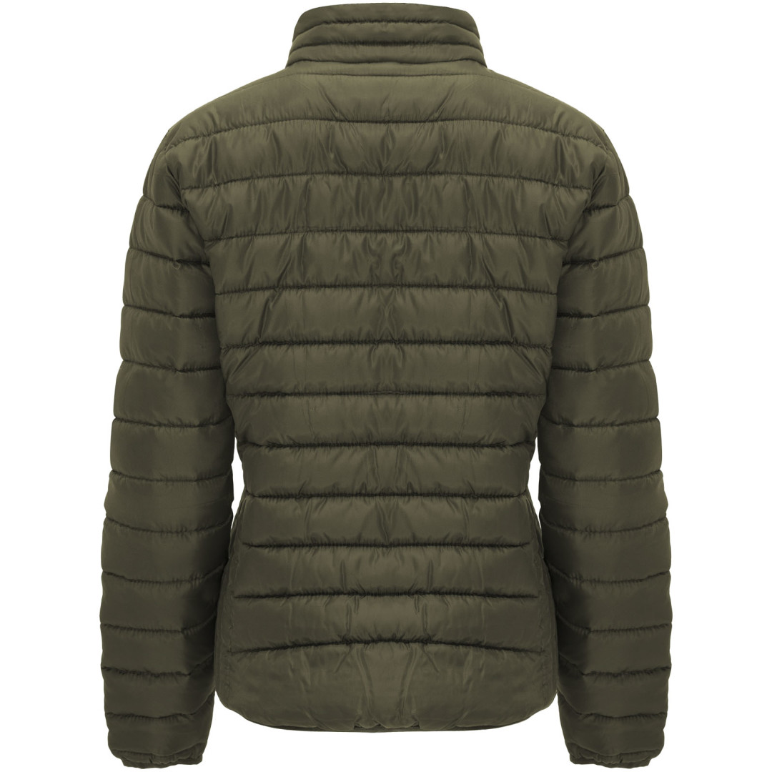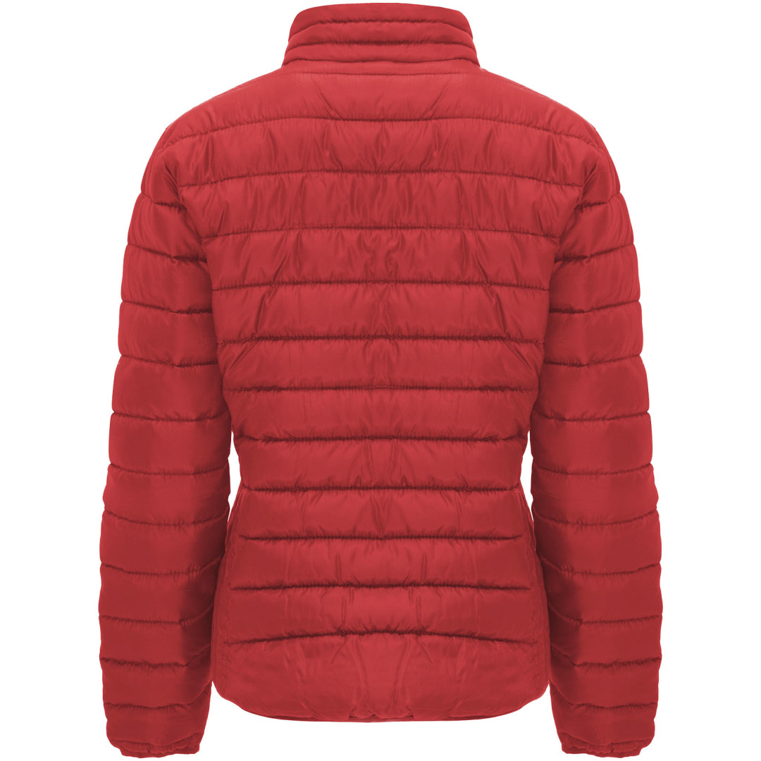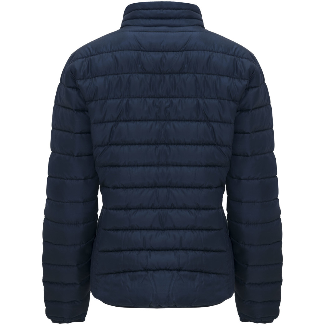 Dámská prošívaná bunda s péřovou výplní. Inverzní zipy s odpovídajícím chráničem brady a tahákem. Dvě přední kapsy se zipy. Odpovídající elastické lemování na límci, manžetách a lemu. Kontrastní vnitřní podšívka. Obsahuje úložnou tašku. Lehký a skládací oděv. Vypasovaný střih. Odnímatelný štítek. Voděodolný. Větruodolné. Modelka měří 179 cm a má na sobě velikost S.