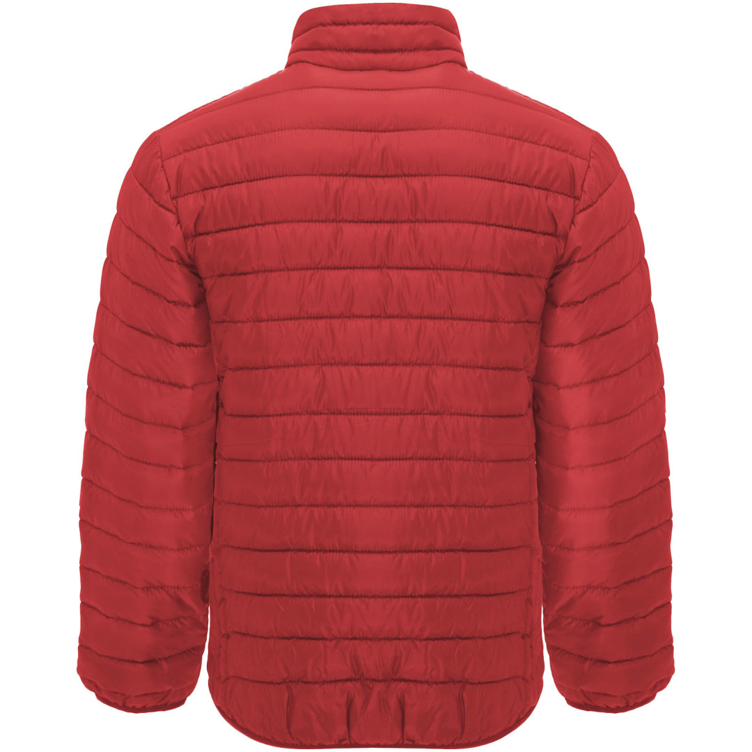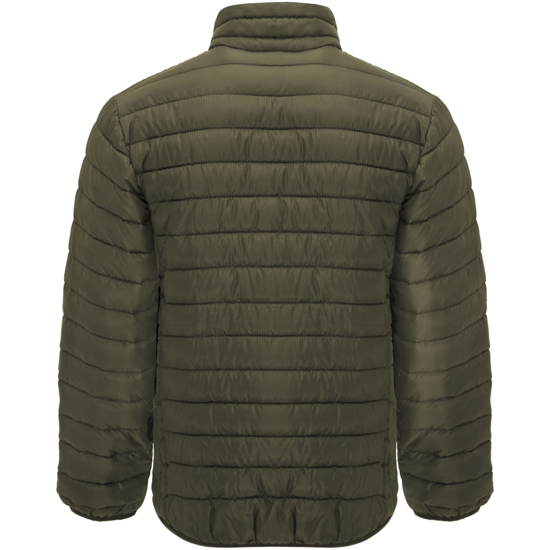 Pánská prošívaná bunda s výplní z peří na dotek. Obrácené zipy s odpovídajícím chráničem brady a stahováním. Dvě přední kapsy se zipy. Odpovídající elastické lemování límce, manžet a spodního lemu. Kontrastní vnitřní podšívka. Součástí je úložný vak na přenášení. Lehký a skladný oděv. Odnímatelná etiketa. Odolný vůči vodě. Odolný proti větru. Model měří 184 cm a má na sobě velikost L.