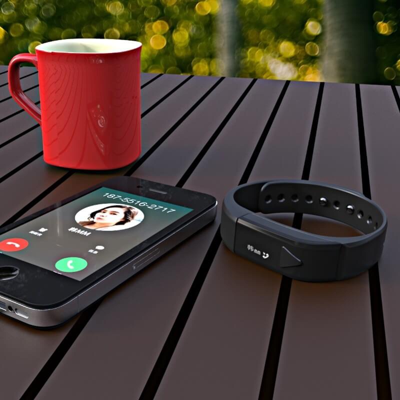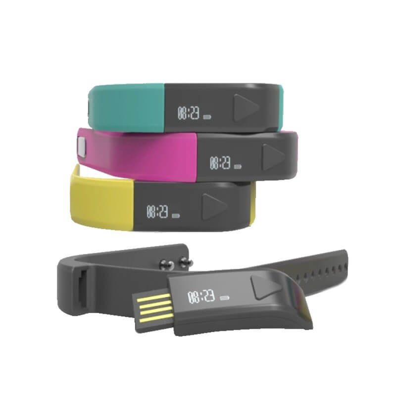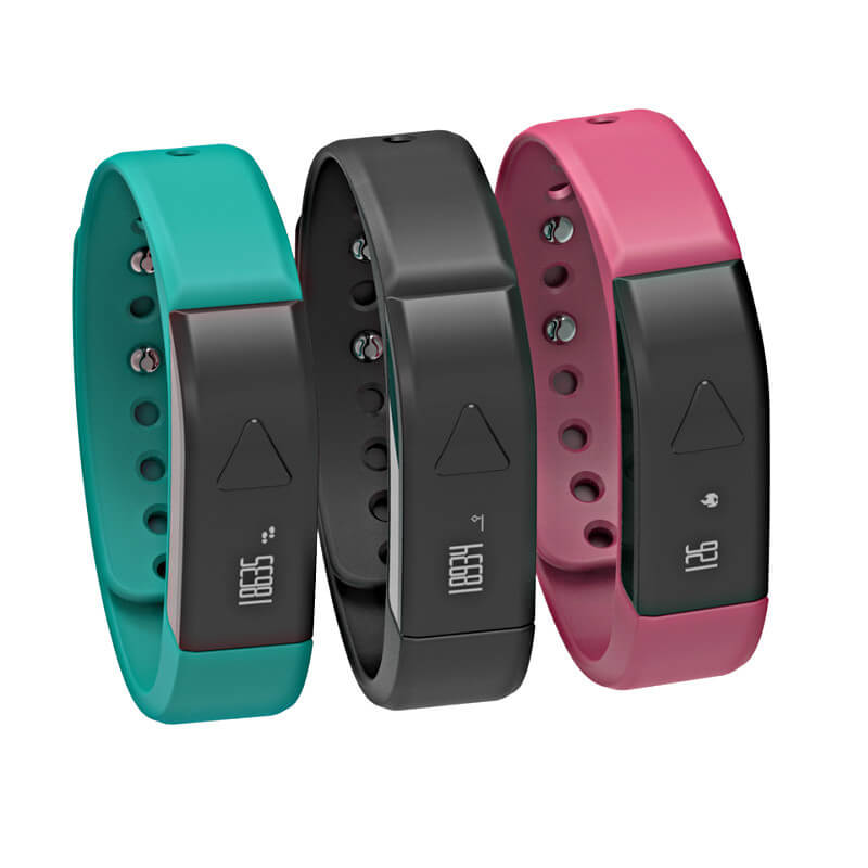 Hlavní funkce: krokoměr, vzdálenost, kalorie, monitor spánku, čas, vibrační budík, zobrazení příchozích hovorů a SMS, spoušť