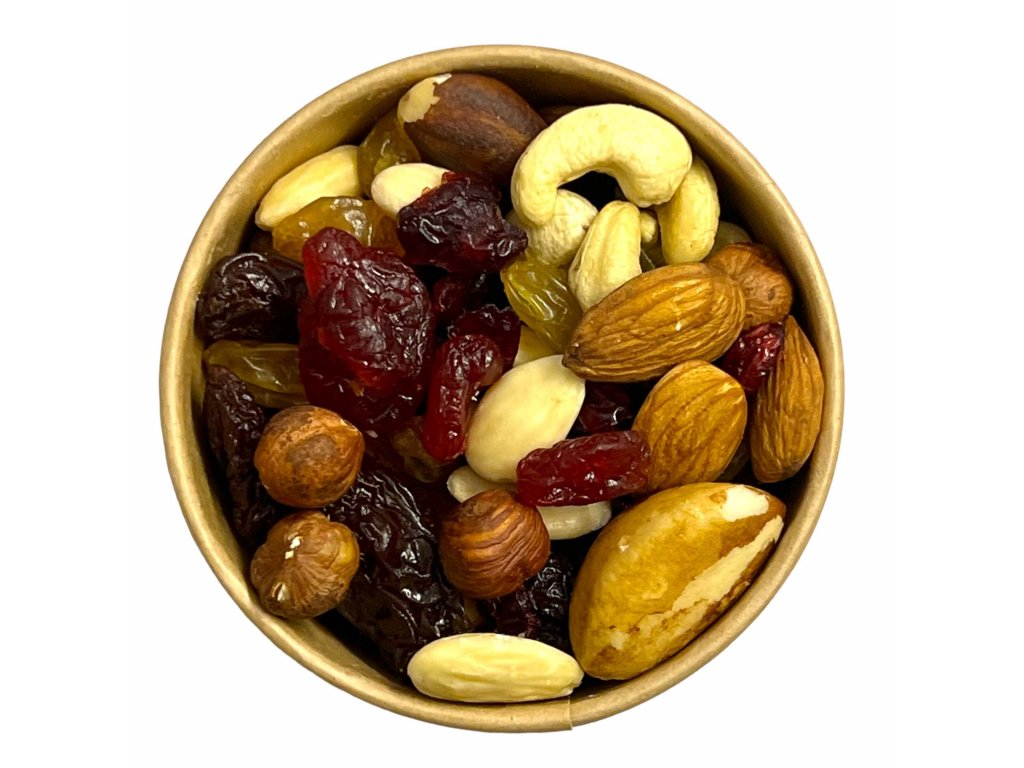 Složení: BRUSINKY sušené nesířené (USA) - Brusinky 66%, třtinový cukr 33,5%, slunečnicový olej 0,5%. ROZINKY jumbo (Chille)- Rozinky 99,5%, slunečnicový olej 0,5%. TŘEŠNĚ sušené (Čína) - Vypeckované třešně 64,94%, cukr 35%, barvivo E129, kyselina citrónová E330, konzervant E220: OXID SIŘIČITÝ, chlorid vápenatý E509. ROZINKY zlaté jumbo (Chille)- Rozinky 99,5%, slunečnicový olej 0,5%, konzervant E220: OXID SIŘIČITÝ. PARA ořechy (Bolívie) - PARA ořechy jádra 100% . MANDLE natural výběrové nonpareil (USA) - MANDLE natural JUMBO 100%. MANDLE loupané JUMBO (USA) - MANDLE loupané 100%. LÍSKOVÉ oříšky - jádra (Gruzie) - 100% LÍSKOVÉ ořechy. KEŠU natural ww320 (Afrika) - KEŠU ořechy ww320 100%.