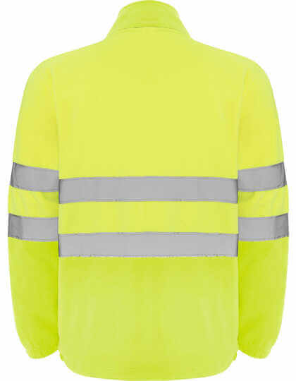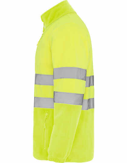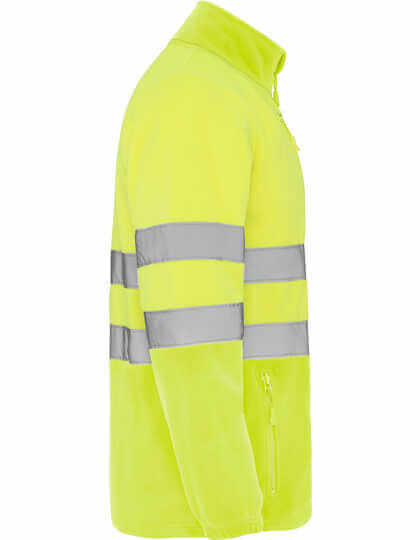 100 % polyester, mikroflís, 300 g / m² | Po celé délce zip s ochranou brady | Dva reflexní proužky na hrudi a rukávech | Dvě přední kapsy se zapínáním na zip ve stejném stylu a náprsní kapsičkou | Elastické stahovací šňůrky se zarážkou v lemu | Odolné vůči větru | Certifikováno podle norem CE: EN ISO 13688:2013 a EN ISO 20471:2013/A1:2016, třída II | Výrobce garantuje reflexní vlastnost podle normy EN pro 25 pracích cyklů do 30 °C