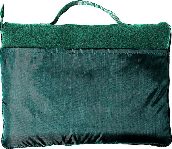 Fleecová přikrývka (180 gr / m?) Balená v polyesterové brašně se zipem a přední kapsou.