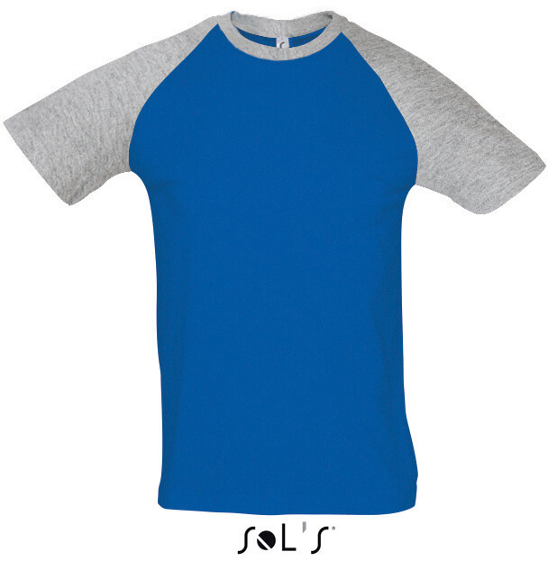 150g/m², 100% částečně česaná bavlna, grey melange barvy: 85% bavlna, 15% viskóza kulatý výstřih s jemně žebrovaným elastickým lemem, raglánové rukávy v kontrastní barvě, lemovka u krku