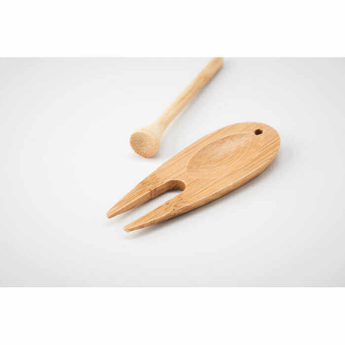 Bambusový golfová pomůcka na divoty. Udržujte green v perfektním stavu s tímto nástrojem na divoty vyrobeným z bambusu. S tímto nástrojem snadno odstraníte a skryjete stopy po míčku na greenu. Bambus je přírodní materiál, u každého jednotlivého kusu se mohou vyskytnout drobné odchylky v barvě a velikosti, které mohou mít vliv na finální podobu potisku.