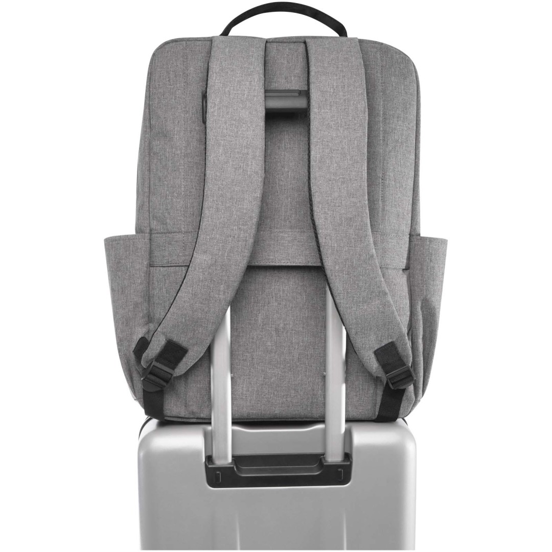 Batoh Libra je vyroben z recyklovaného polyesteru s certifikací GRS a RPET podšívky a obsahuje 15” přihrádku na notebook s další polstrovanou kapsou na tablet a organizačními kapsami. K dispozici je také několik kapes na vnější straně, polstrované a nastavitelné ramenní popruhy a popruh na kufr na kolečkách na zádech. Nosnost do 10 kg.