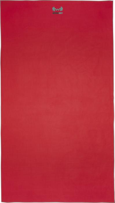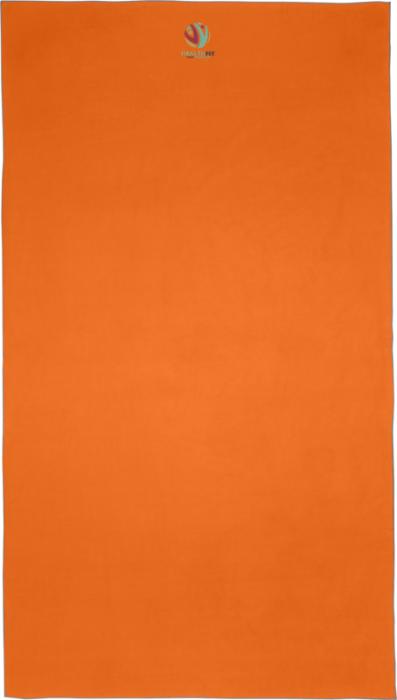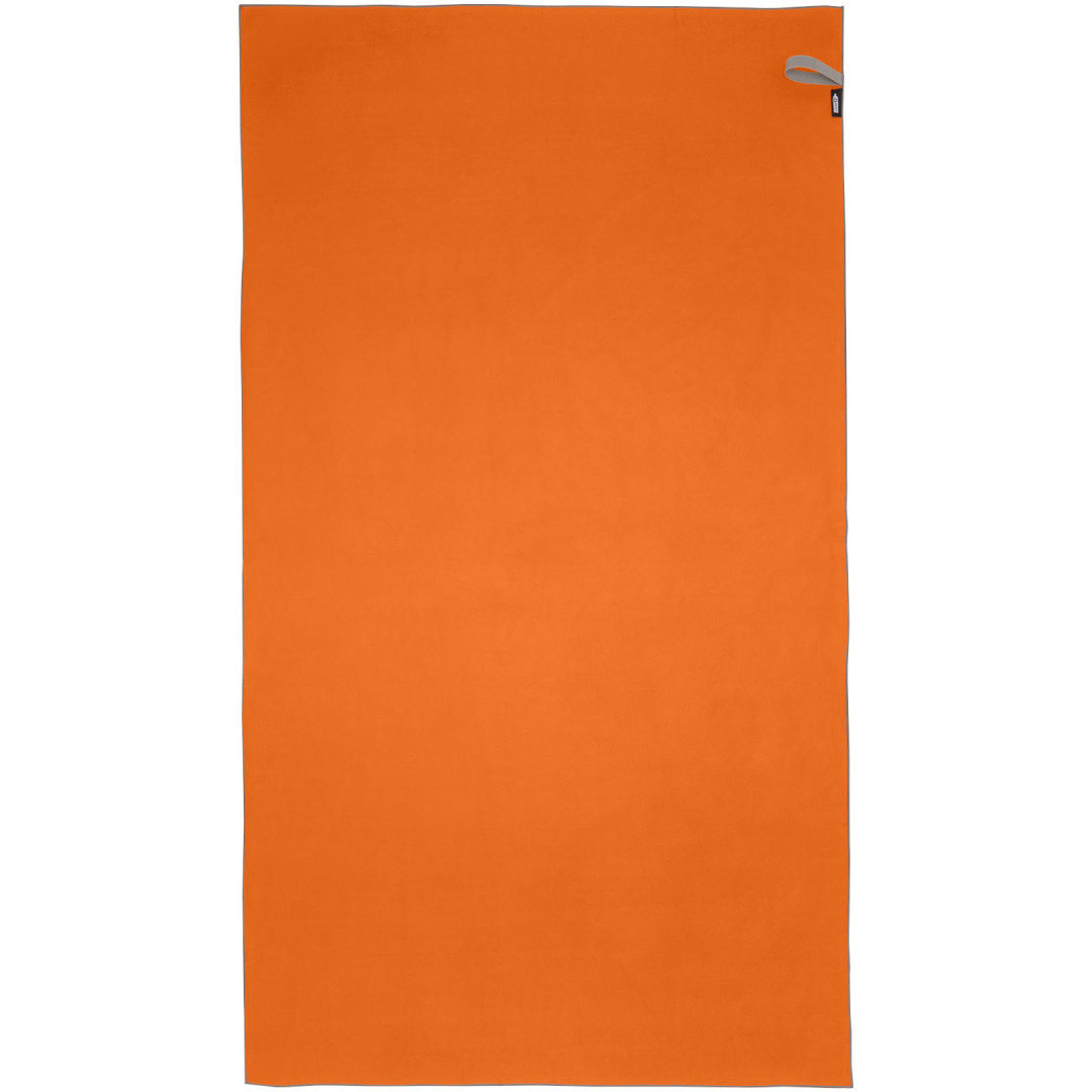 Sportovní ručník Pieter velmi dobře saje, je lehký, rychle schne a tkanina je odolná a extrémně měkká. Když je ručník složený a zajištěný elastickým páskem, je zmenšen na malou velikost, díky čemuž je vhodný pro nošení do posilovny, na koupaliště nebo na výlety nebo kempování. Ručník má rozměr 180 × 100 cm a je vyrobena z 90% GRS recyklovaného polyesteru a 10% nylonu a lze ho prát v pračce na 40 °C. Dodáváno s úložným sáčkem (25 × 8,5 cm) vyrobeným z recyklovaného PET plastu, který poskytuje skvělou plochu pro tisk loga.