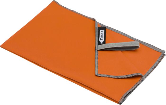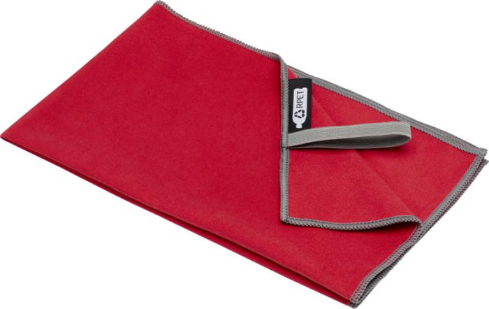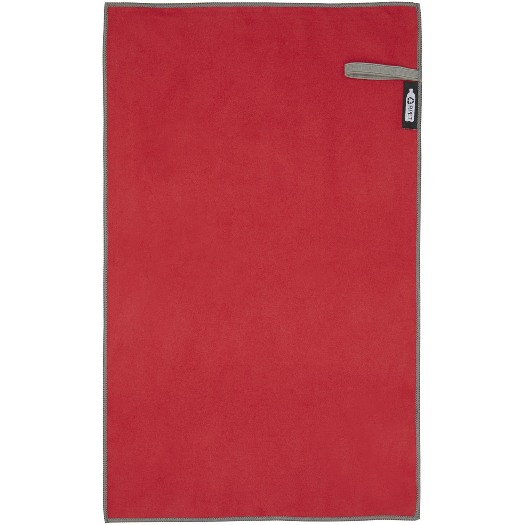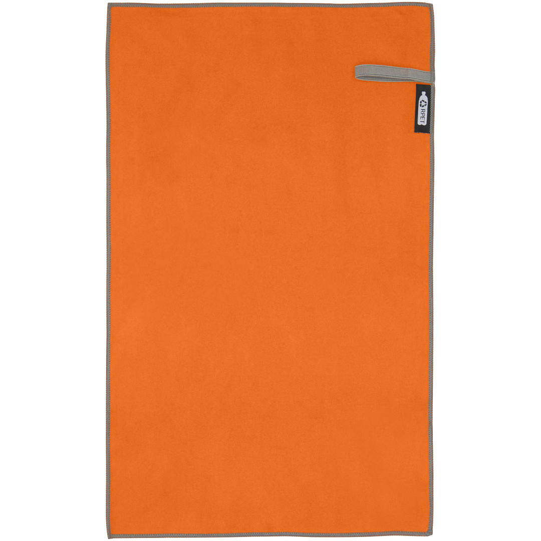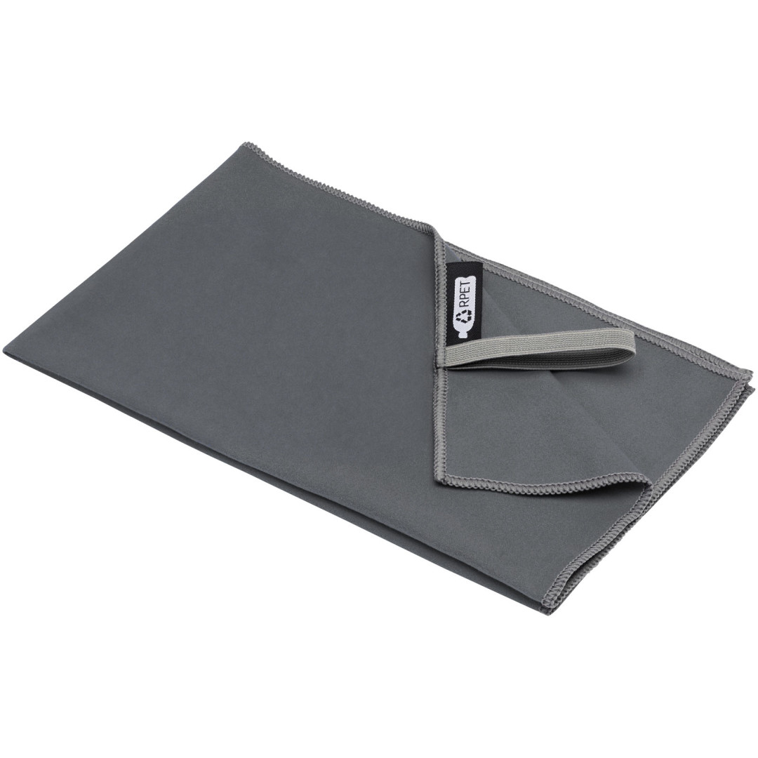 Sportovní ručník Pieter velmi dobře saje, je lehký, rychle schne a tkanina je odolná a extrémně měkká. Když je ručník složený a zajištěný elastickým páskem, je zmenšen na malou velikost, díky čemuž je vhodný pro nošení do posilovny, na koupaliště nebo na výlety nebo kempování. Ručník má rozměr 50 × 30 cm a je vyroben z 90% GRS recyklovaného polyesteru a 10% nylonu a lze jej prát v pračce na 40 °C. Dodáváno s úložným sáčkem (15,5 × 10 cm) vyrobeným z recyklovaného PET plastu, který poskytuje skvělou plochu pro tisk loga.